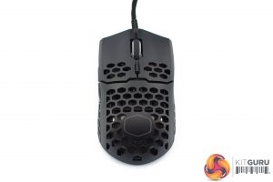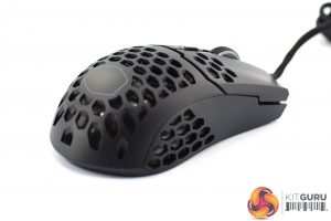 As for the mouse itself, it's an ambidextrous design with plenty of holes cut into the shell. I do like that Cooler Master has made these hexagonal holes shaped like its logo – it's certainly a bit different to the regular ‘honeycomb' design we are used to seeing.