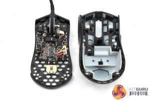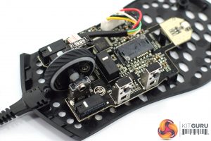 Elsewhere, the scroll wheel uses a Huano green switch, while the DPI button uses a Kailh white switch. It's not clear what scroll wheel encoder is in use.