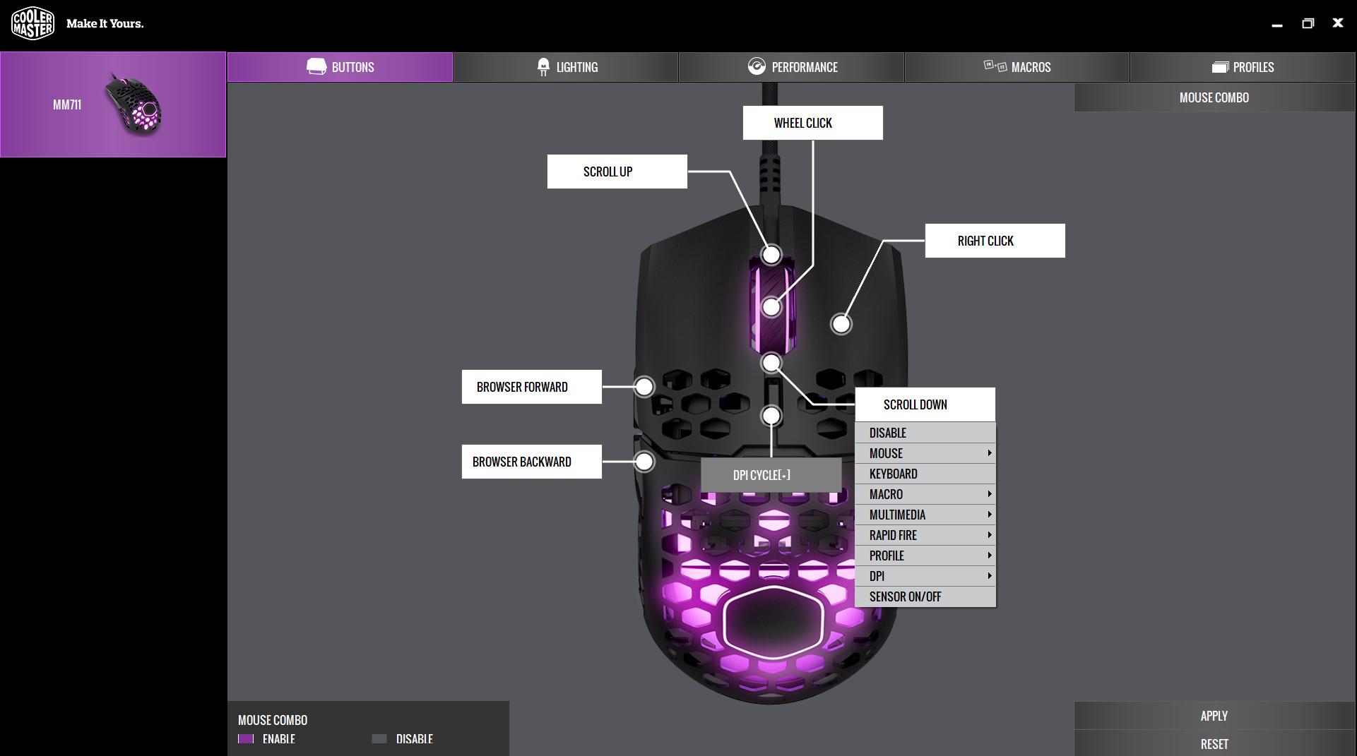 The MM711 uses Cooler Master's MasterPlus software suite – download HERE – with version 1.99 the latest at the time of writing.
