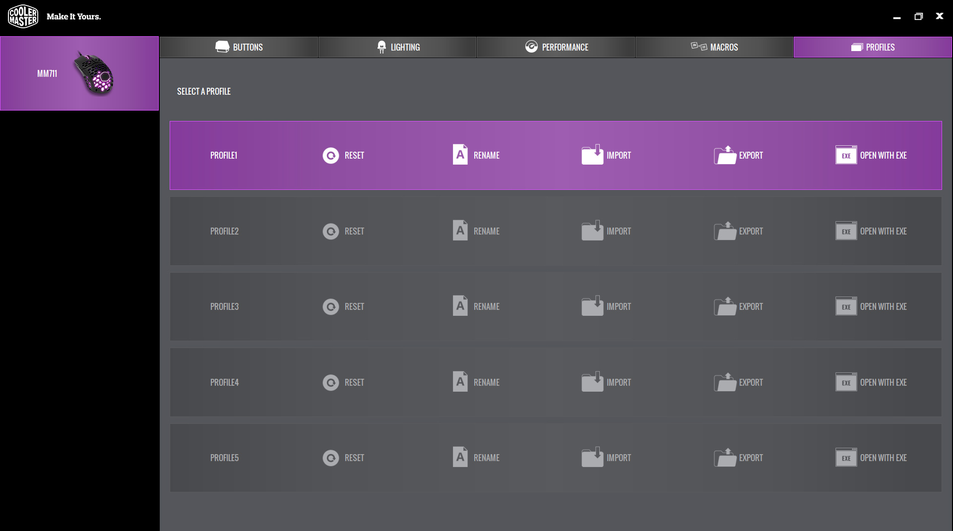 - Profiles – save and edit up to 5 profiles which are stored to the mouse's on-board memory.