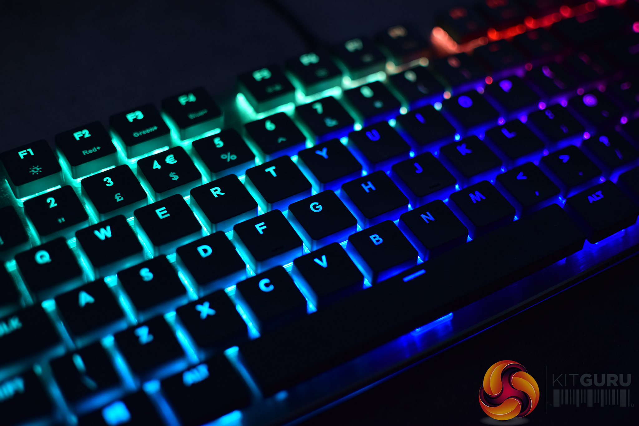 Other features worth mentioning include the wide variety of on-the-fly controls available with the SK630. Most of these features are accessible by using Fn+ function keys – for instance, you can record a macro by using F11, cycle through the RGB modes using F5, or use F2/F3/F4 to manually choose a static colour backlight.