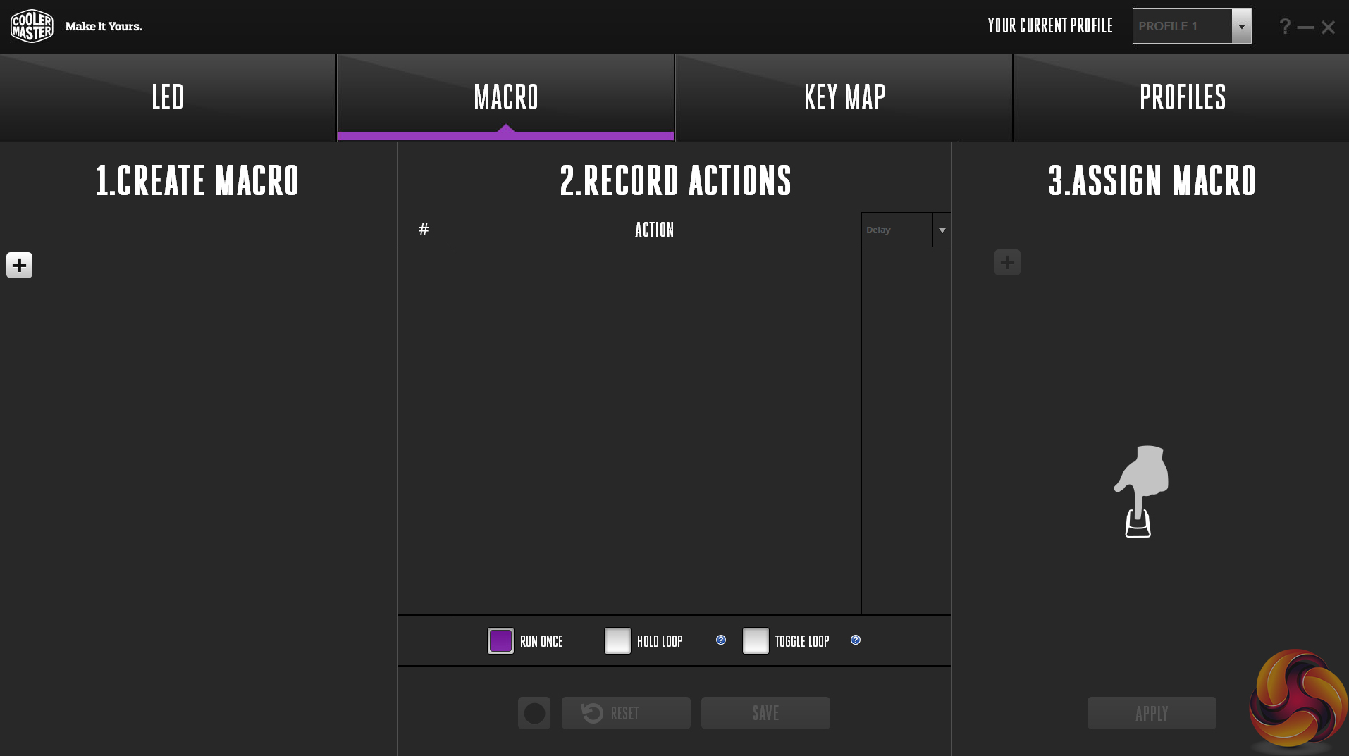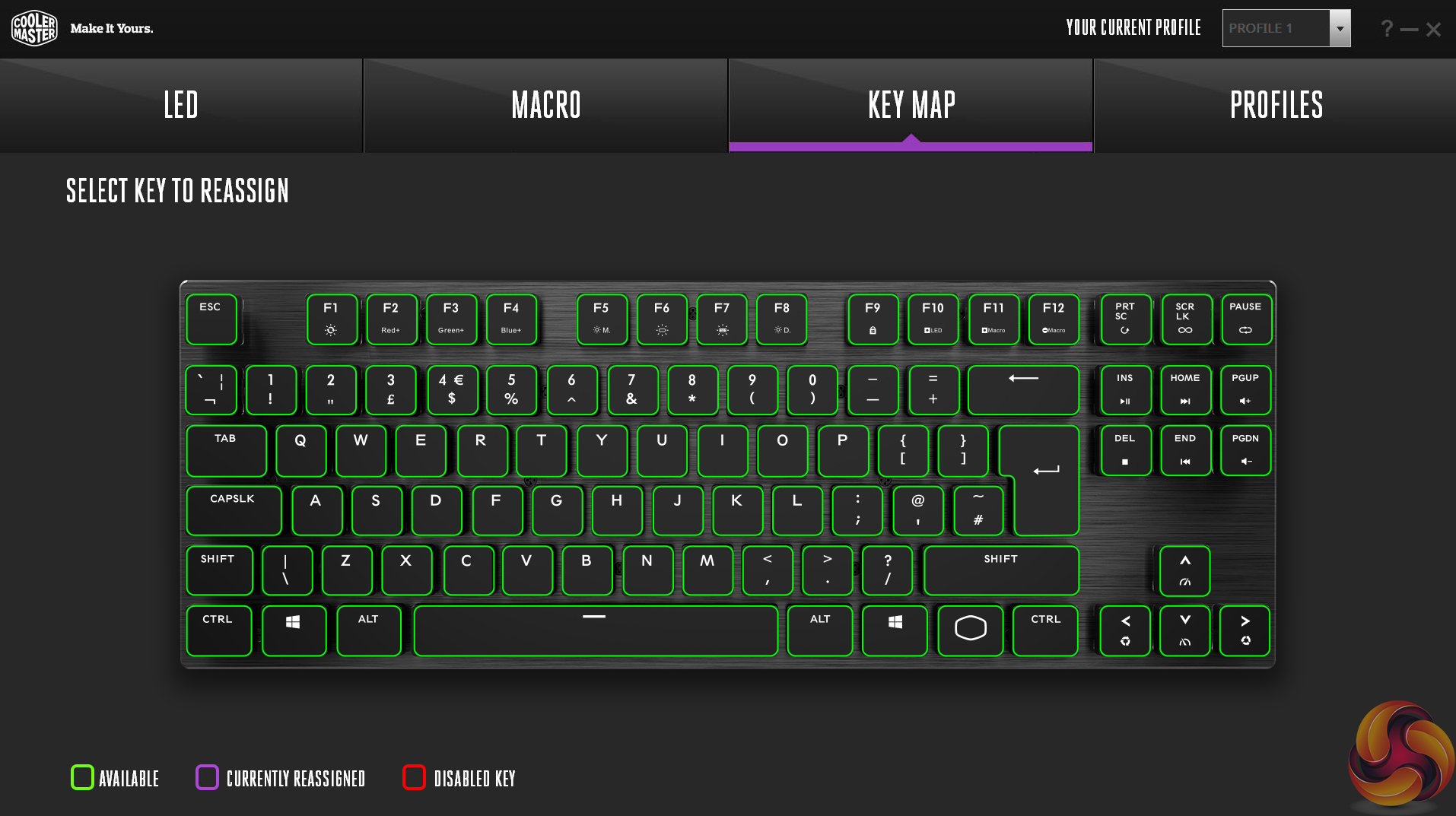 Starting with the software, this is now done through Cooler Master Portal. For the SK630, there are four areas of control – LED, macro, key map, and profiles.