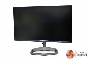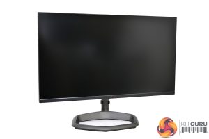 The design of the Cooler Master Tempest GP27U is pretty similar to previous CM displays we have reviewed. The front sports slim bezels on the top and sides, with the chin measuring about 14mm thick. We get a grey metal stand too, with a hexagonal-shaped foot that is clearly reminiscent of Cooler Master's logo.