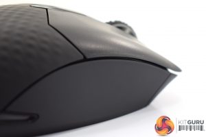 The right hand side of the mouse is smooth, soft-touch rubber by default – but the whole side grip can be removed.