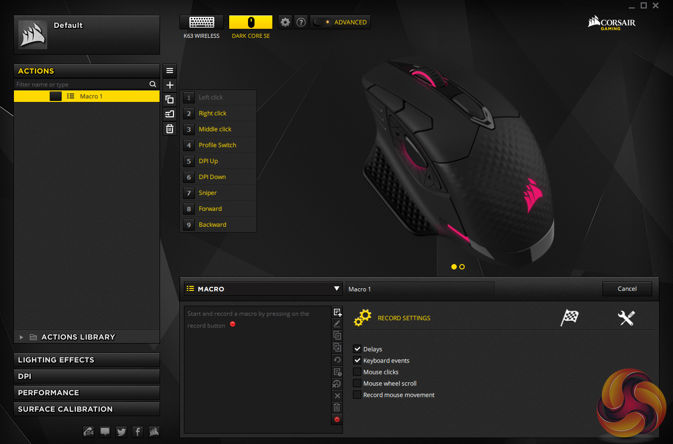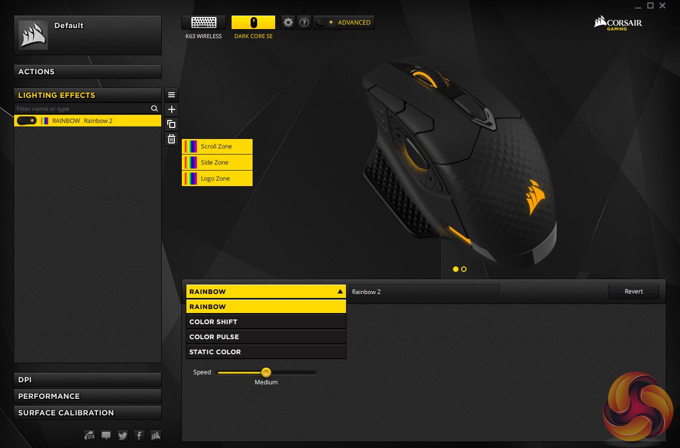 Just like the K63 Wireless we reviewed last week, the Dark Core RGB SE uses the latest version of Corsair Utility Engine (CUE) to give users extra software control.