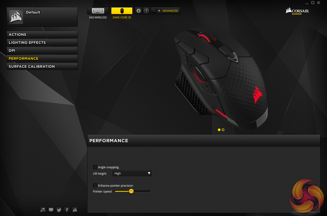 Elsewhere, the performance tab lets you change things like lift-off distance (LOD) and angle snapping, while surface calibration allows the Dark Core RGB SE to calibrate itself to the surface of your mousepad.