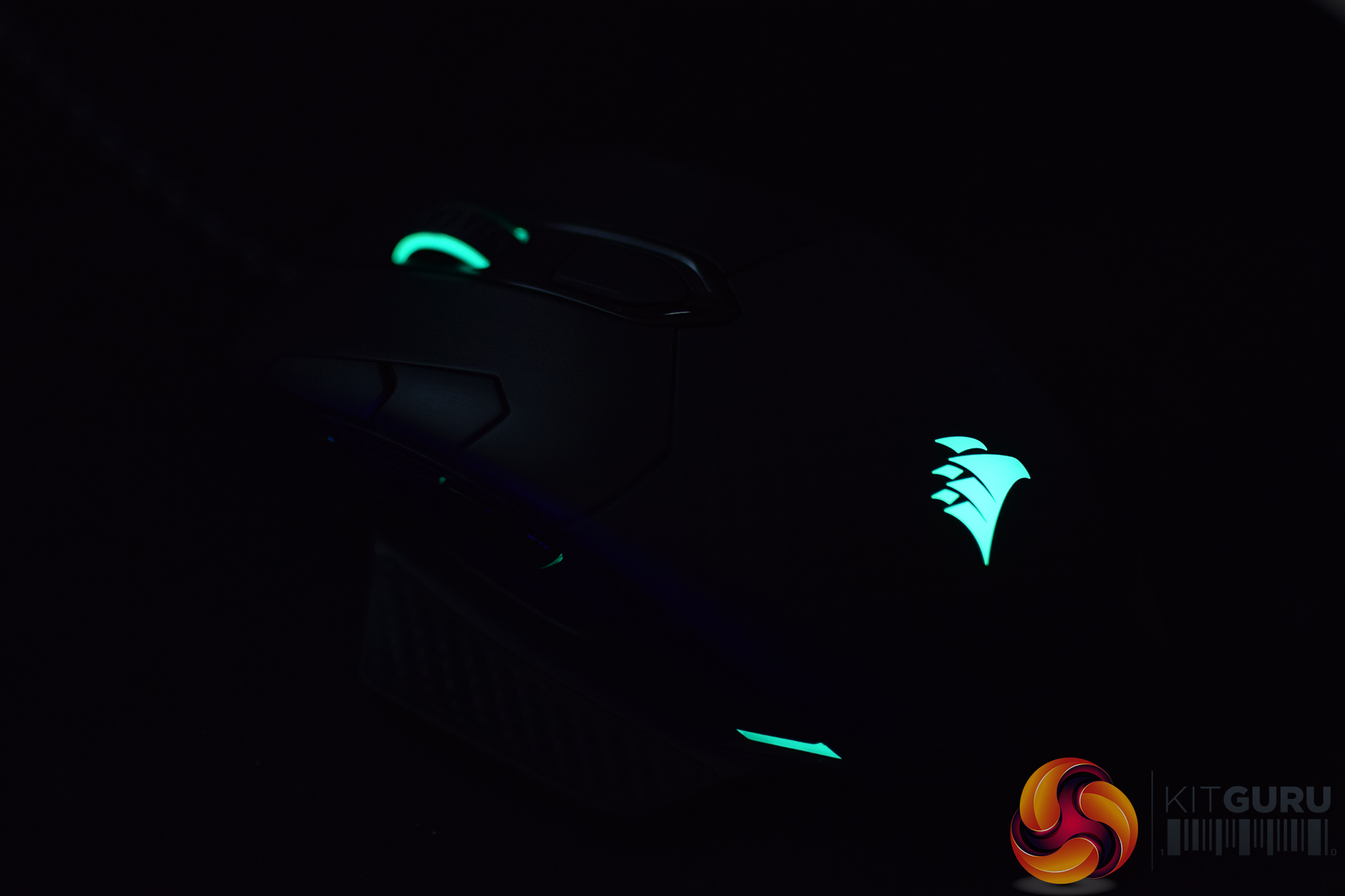 I do have one issue with the build, though, and that's to do with the glossy strip at the very bottom of the mouse, just under the Corsair logo. On my sample, I found this panel to be a touch loose and I could feel it moving under my palm as I used the mouse. Other than that, the mouse feels really good.