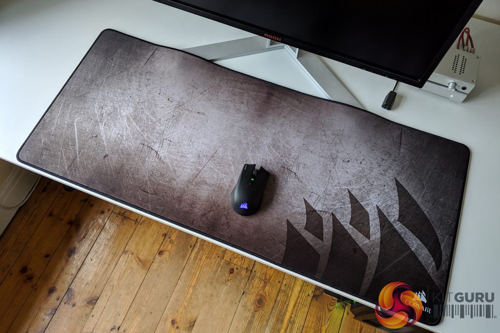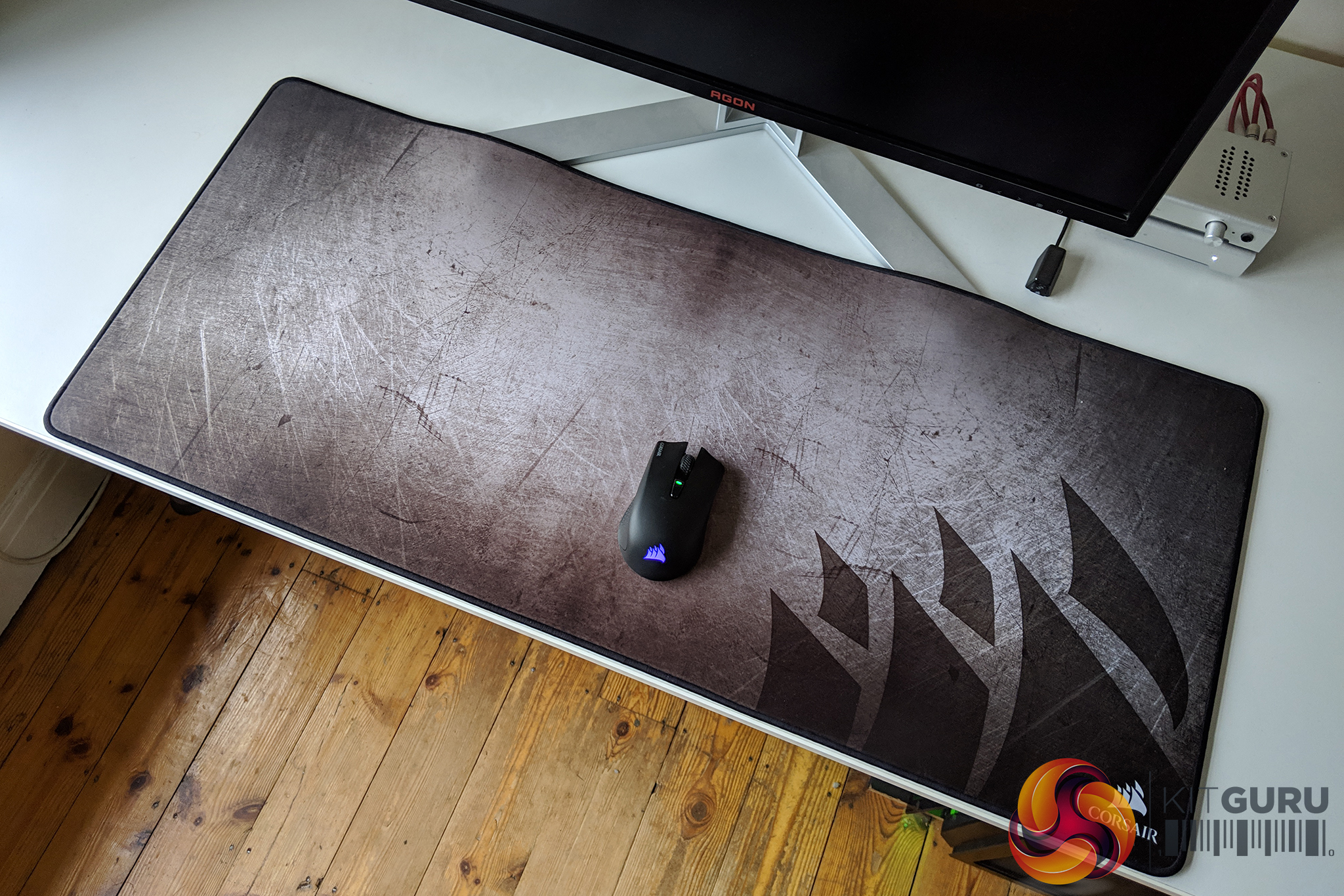One last thing to mention is the new MM350 mousemat I have been testing alongside the Harpoon Wireless. This is the successor to the MM300 mat that has been around for a while now, and although I've not used that model, at its heart the MM350 is quite similar to its predecessor in that it is a massive cloth pad with stitched edges. Both have the same distressed design, too, with the Corsair sails positioned in the bottom right corner.