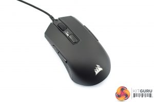 Coming to the sides of the mouse, both are exactly the same with a textured rubber grip and two side buttons. Incidentally, Corsair say these grips are ‘highly durable double-shot side grips', and they also appear to be moulded onto the mouse – as per the Harpoon RGB Wireless – rather than being rubber grips that have been stuck on.