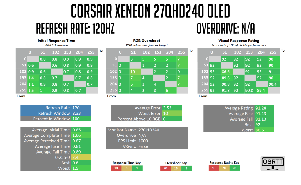 Visual Response Rating is a metric designed to ‘score' a panel's visual performance, incorporating both response times and overdrive. Fast response times with little to no overshoot will score well, while slow response times or those with significant overshoot will score poorly.