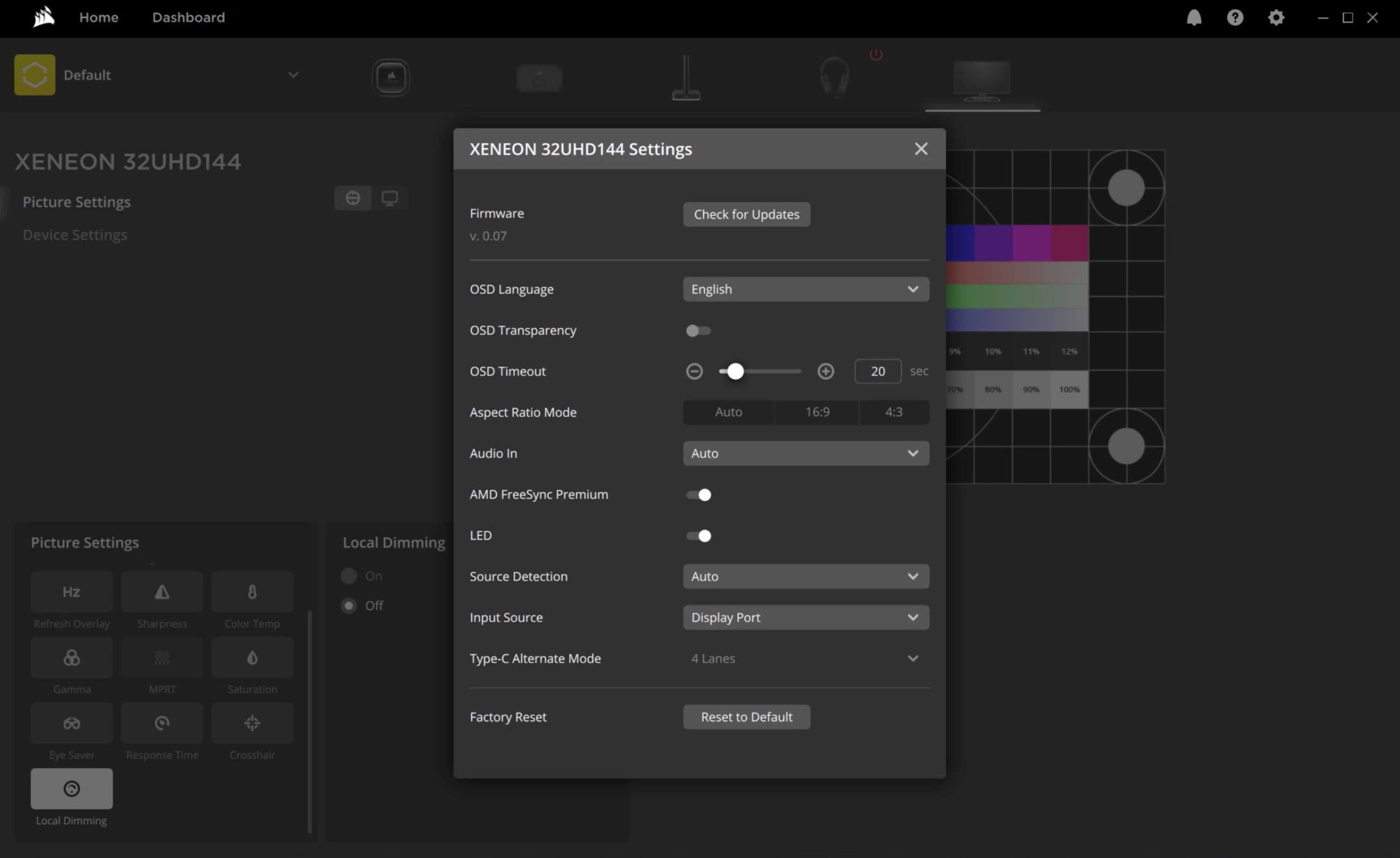 It is also possible to adjust the monitor's settings directly from your PC, using Corsair's iCUE software, provided you have connected the monitor to your PC via USB cable. This simply provides all the same settings you get from the OSD, but in software form, and you can also save different profiles and have them ready at a click of a mouse.