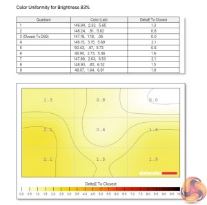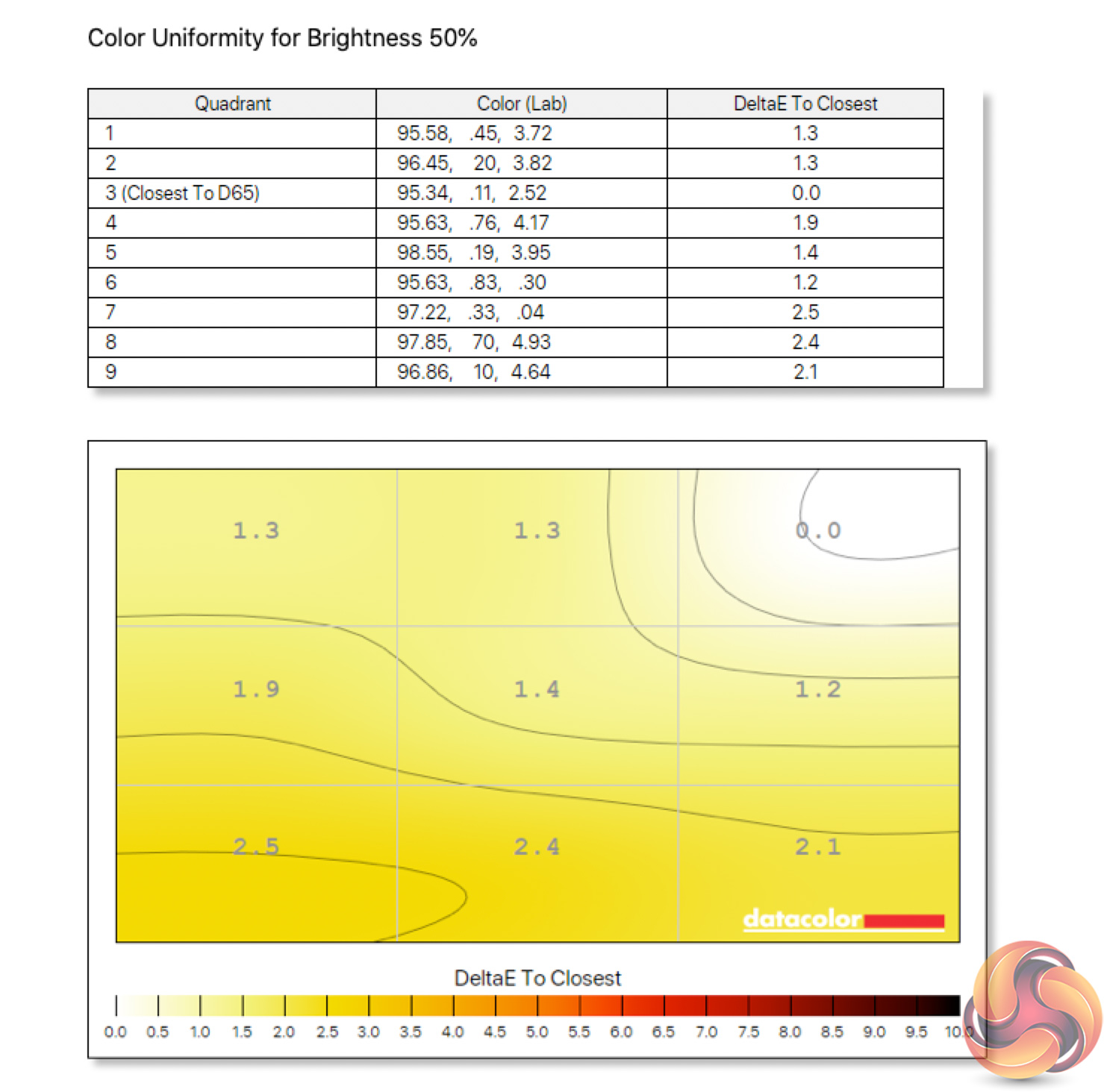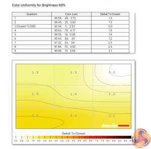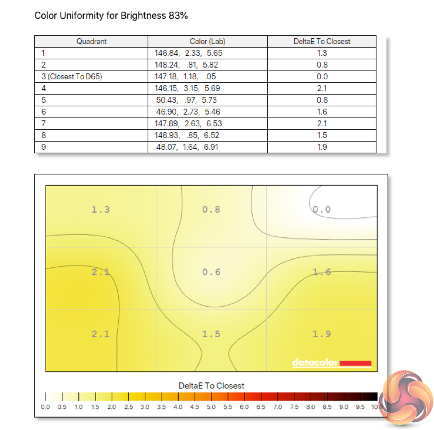 Colour uniformity is excellent too across all four brightness levels tested (100%, 83%, 67% and 50%.) There's only a minimal difference reported.