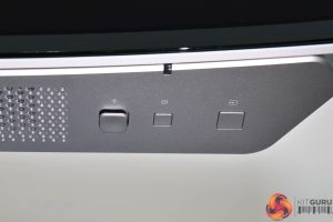 On the underside of the display we find the three control buttons – from right to left we have the input switch, then the power button, and finally an OSD joystick. It's all fairly standard stuff, but again I did notice the joystick is quite wobbly to the touch. It's not a major concern, but it just feels very loose and doesn't necessarily inspire a great amount of confidence in its longevity, but only time will tell.