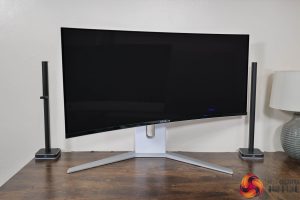 The only thing I'm not too keen on is the chin of the display is made from glossy plastic which catches dust and fingerprints like nobody's business. I would have preferred a matte finish here, but otherwise I like the overall aesthetic. We can also confirm the curvature of the panel – it's 1800R, so a fairly relaxed curve, unlike some of the 800R WOLED screens on the market right now.