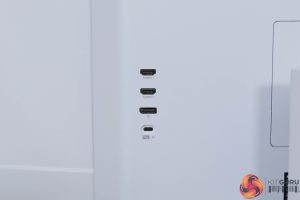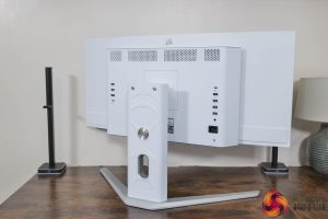 As we've come to expect from Corsair monitors, the I/O is positioned facing outwards on the back of the central hub. The display inputs are positioned on the left-hand side (when viewed from the rear) and include 2x HDMI 2.1, 1x DisplayPort 1.4, along with 1x USB-C that supports DP-Alt mode and 65W power delivery.