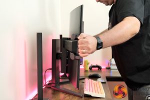 You can see the flex mechanism itself stretching across the length of the panel, with separate brackets used for the left and right side of the display, so you can actually curve each side independently of the other. We show the process below via photos, but this is also included in our video review.