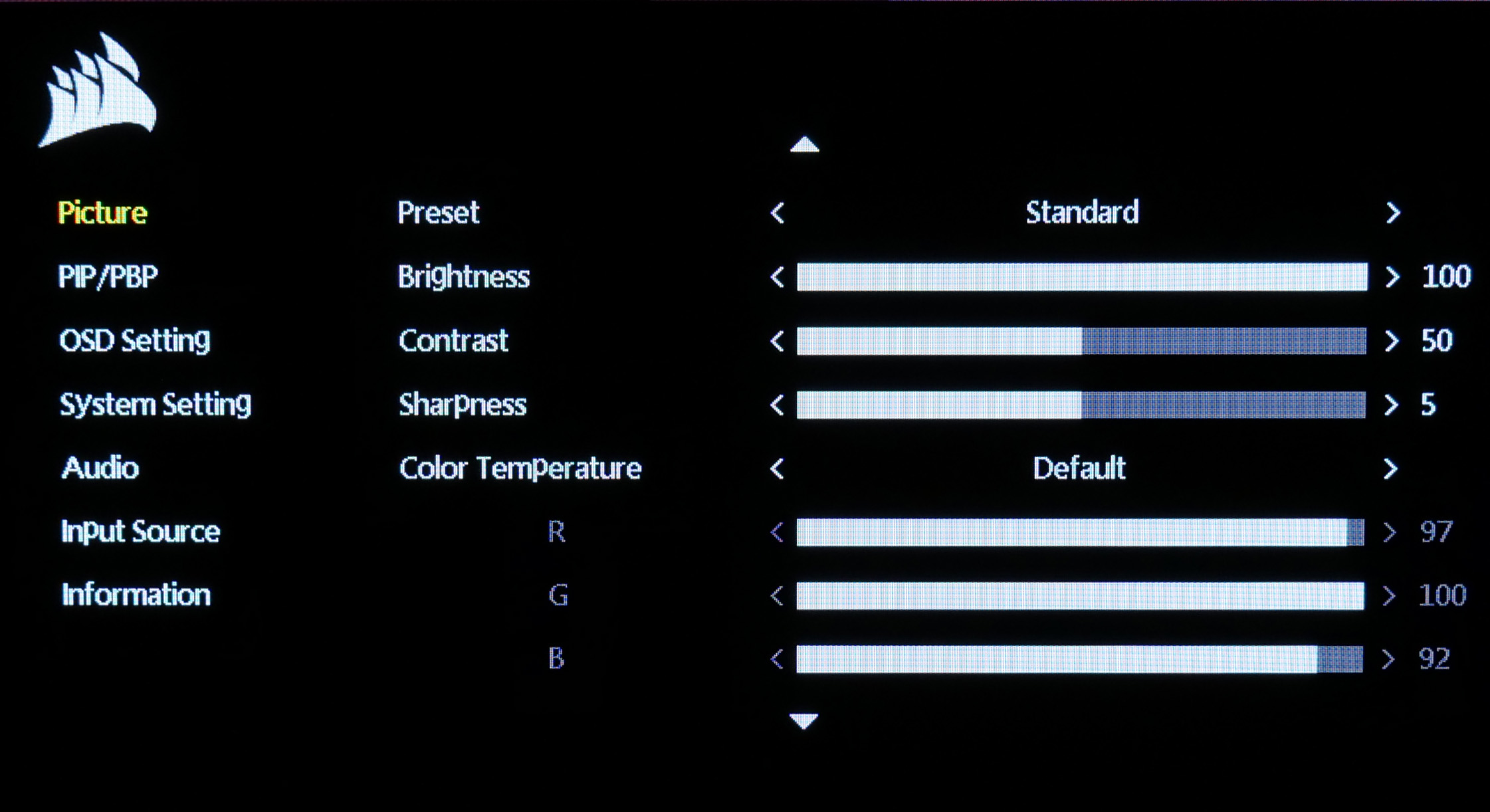 I can't really complain about the OSD. It's easy to navigate with the front-facing joystick and it's got most of the key control you could want. Corsair is also set to offer iCUE integration as well, just like we saw on the 32UHD144, but unfortunately this is another feature that isn't quite ready yet so we were unable to test it.