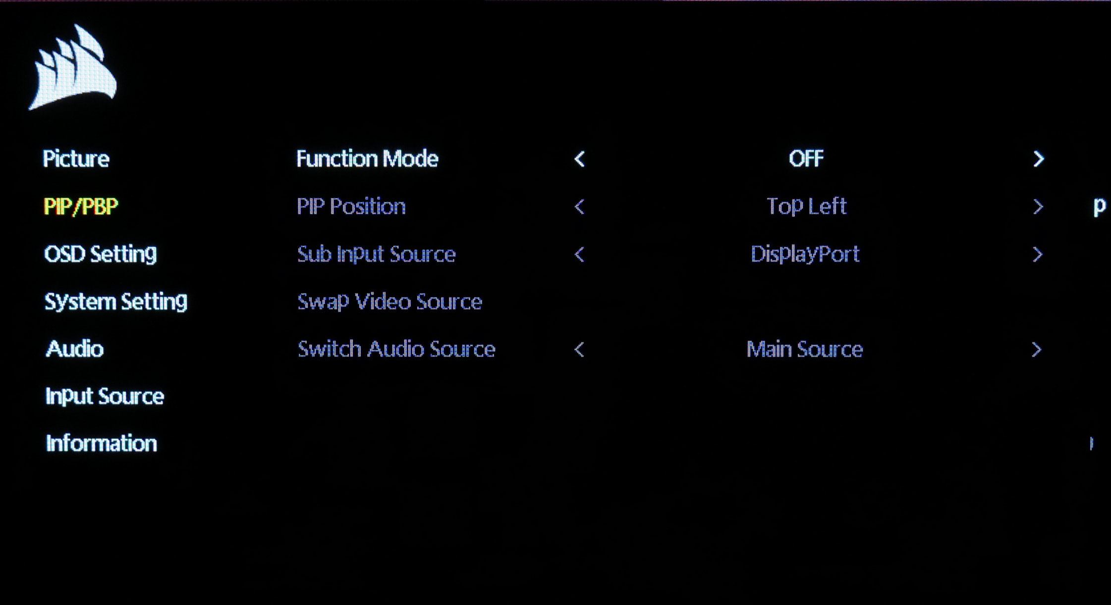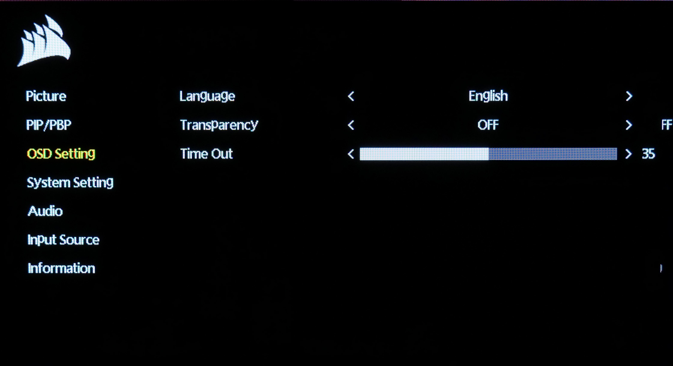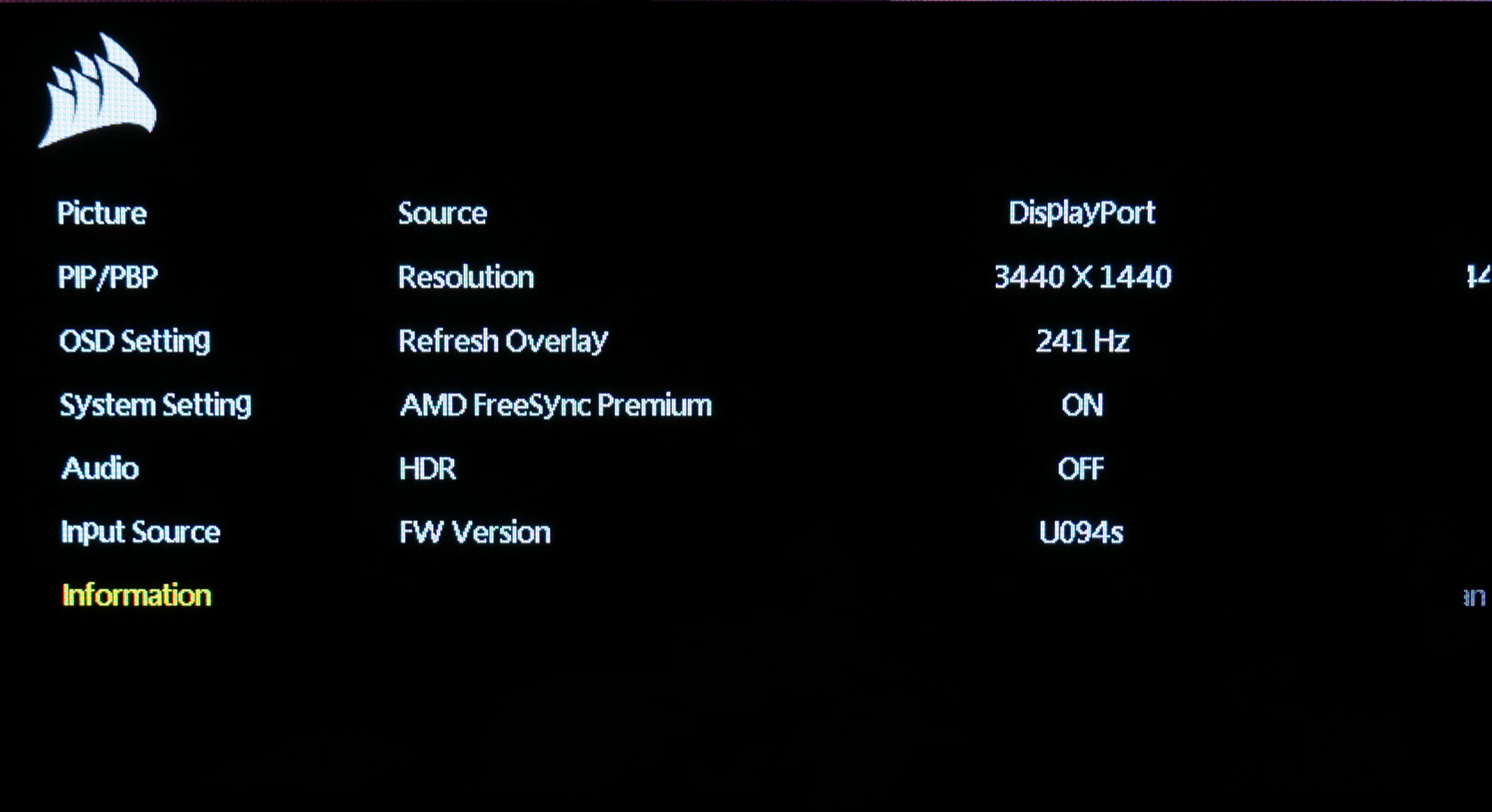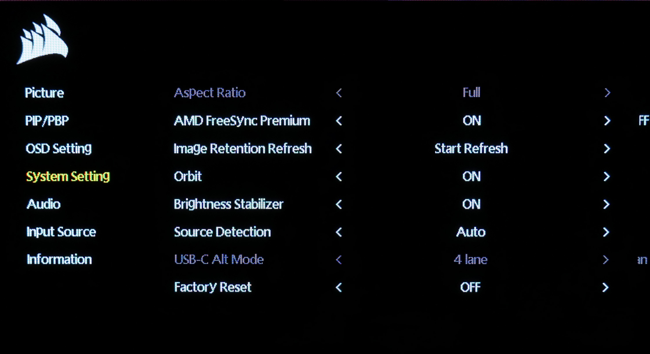 The OSD used for the Xeneon Flex OLED is similar to the likes of the Corsair 32UHD144. It's a very clean-looking system, being entirely text-based without any GUI elements.