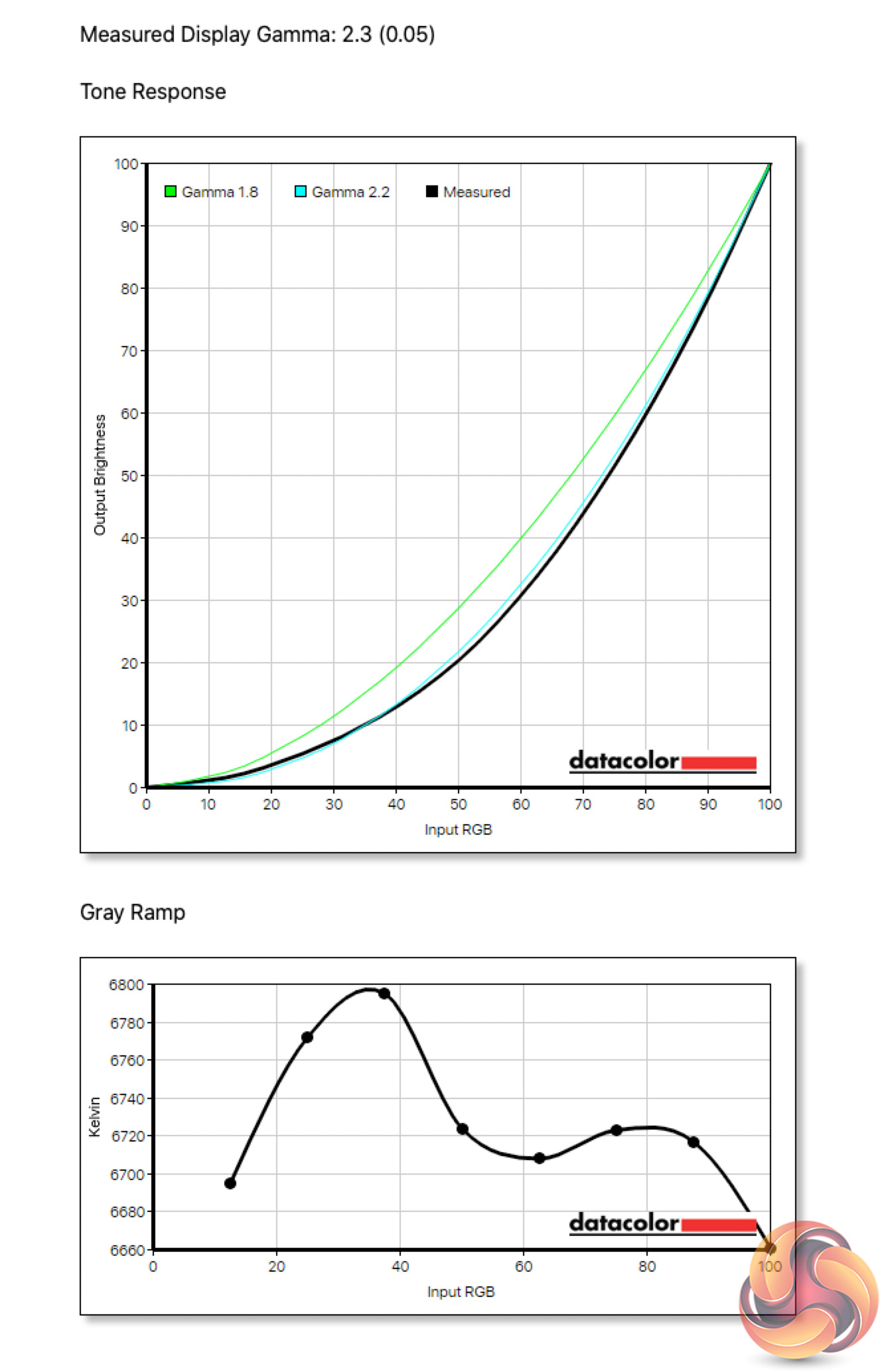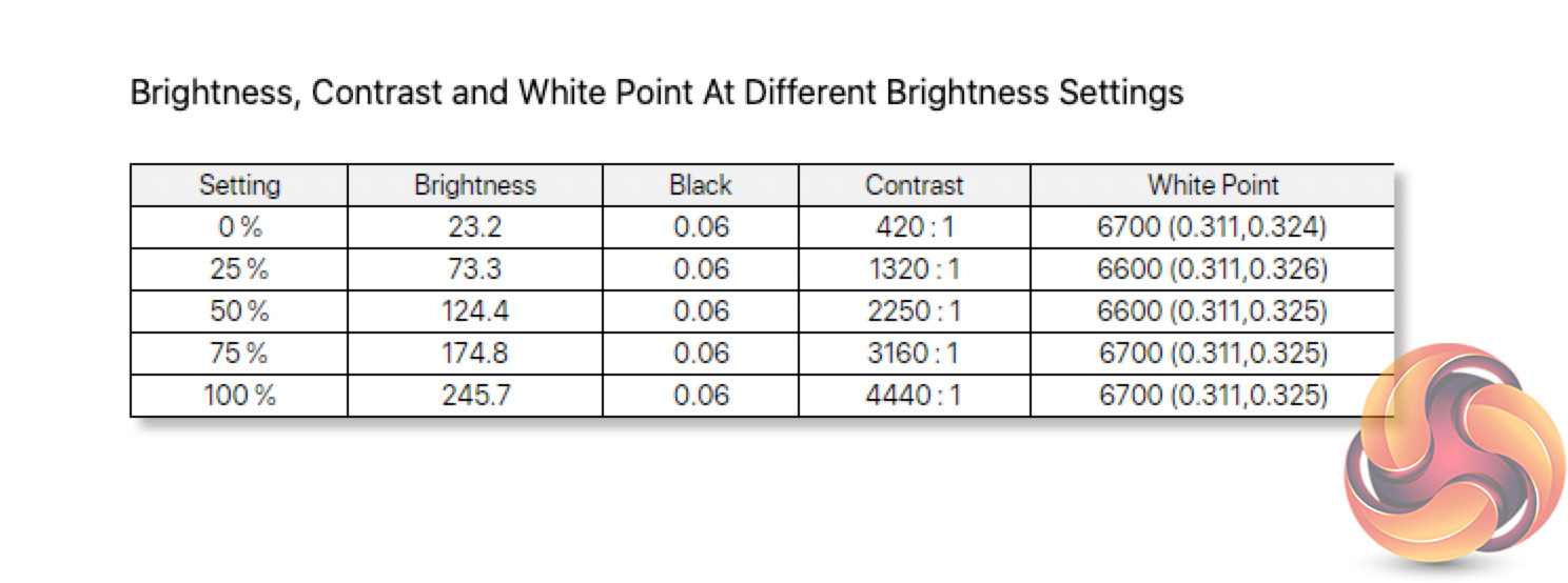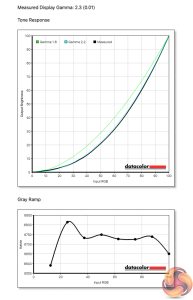 The contrast figures shown in the above test, you can easily ignore – the AW3423DW uses an OLED panel so its pixels can switch off to display true black, giving an effective ‘infinite' contrast ratio. The numbers shown above indicate the limitations of the SpyderX hardware and software.