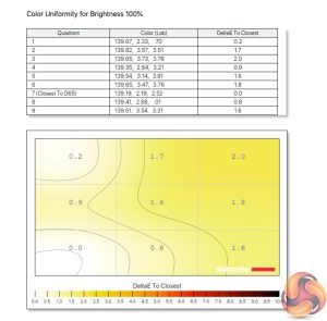 Colour uniformity is also top class, with only very minor deviation towards the upper right corner of the display. Even then, this is the most colour-uniform display I have ever tested.