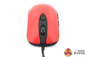 The front of the mouse houses the scroll wheel and a single DPI button. The primary left and right buttons are part of the mouse's main shell, rather than being separate buttons.