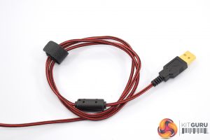 Lastly, the cable. It measures 1.8m long and terminates to a gold-plated USB connector. The cable itself is braided red and black.