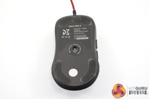 Turning the mouse over, the PMW 3360 sensor takes pride of place in the middle of the mouse. With support for up to 12,000 DPI, the PMW 3360 is a class-leading sensor so it is good to see it included here. The DM1 Pro comes equipped with the PMW 3310, so the 3360 is a definite upgrade for the DM1 Pro S.