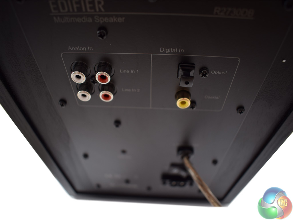 Furthermore, the back of the right-hand speaker also houses all the connections to and from the R2730DB set. There are dual RCA inputs, as well as 1x digital optical and 1x coaxial input – and obviously there is the option to connect via Bluetooth as well.