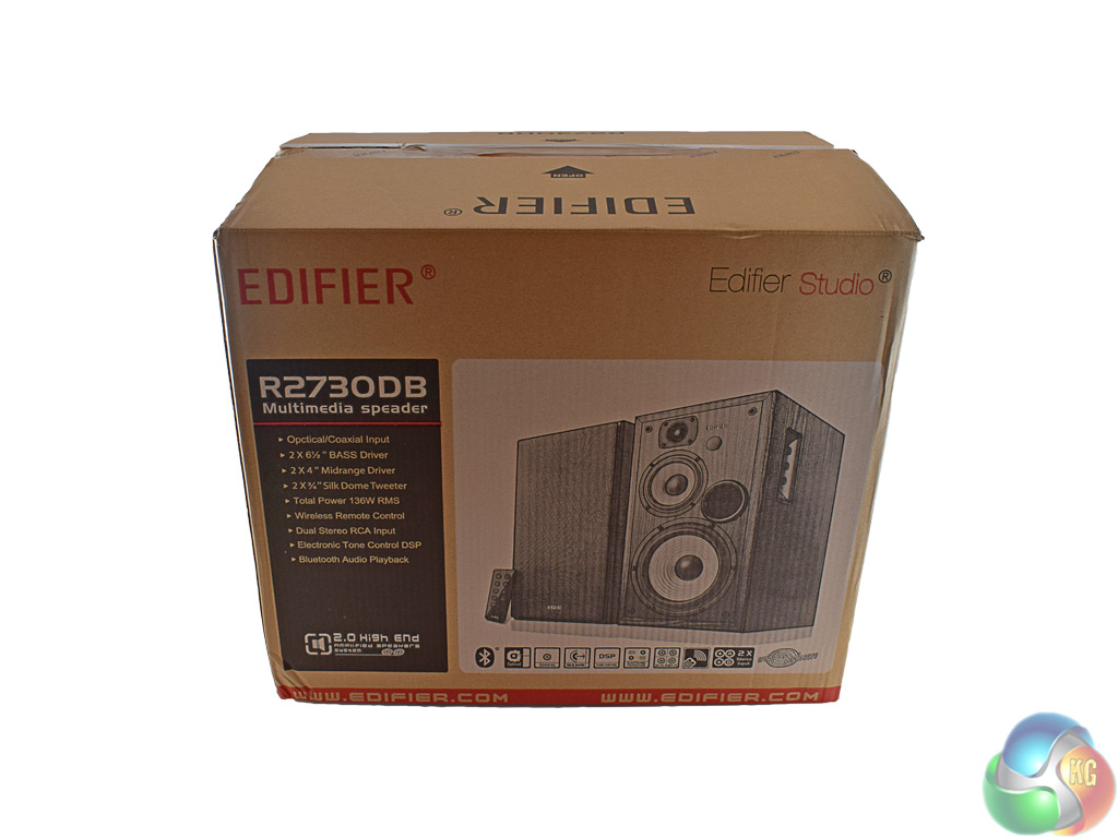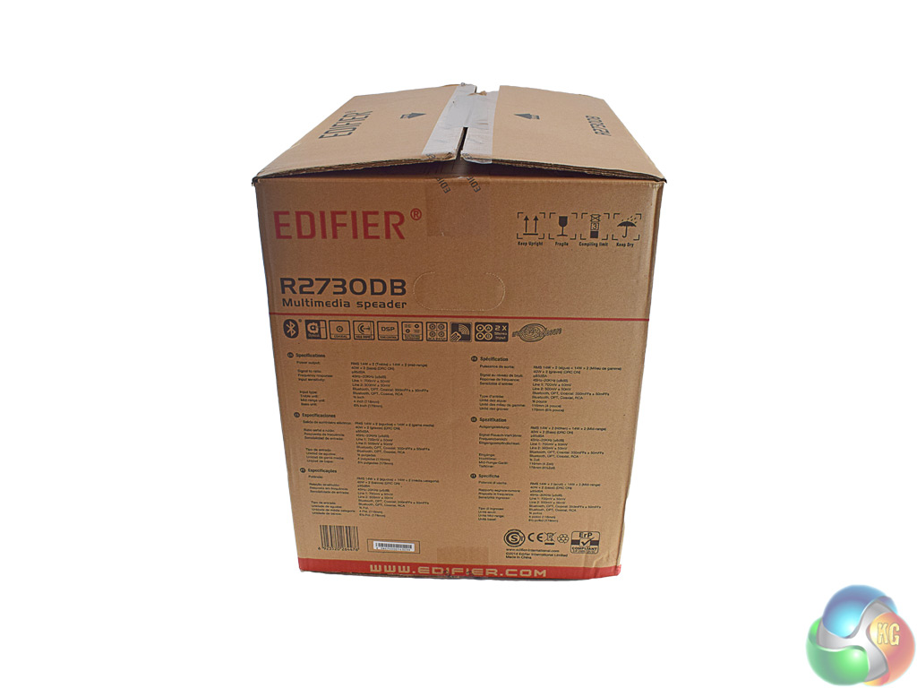 The packaging for the Edifier Studio R2730DB speakers is a fairly standard affair. On the front you can see the pair of speakers and some key details about the set.