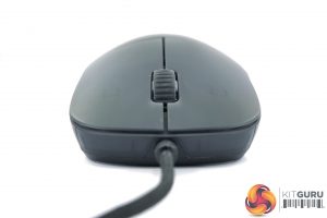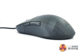 We can also see a small button towards the bottom of the mouse which enables users to adjust DPI settings on the fly. Above it, the two small dots are tiny RGB LEDs which change colour based on what DPI setting is currently in use. Whether both, or just one, of these LEDs light up depends on what polling rate is enabled, though this is set at 1000Hz by default.