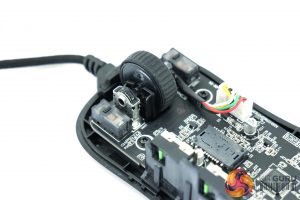 We can see most of the primary differences versus the original XM1 when opening up the shell. First of all, Endgame Gear is now using Kailh GM 8.0 switches for the XM1r's primary buttons, when the XM1 uses Omron D2FC-F-K(50M). The scroll wheel uses a Japanese ALPS encoder, with a Kailh switch used for the scroll click.