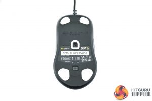 Turning the mouse over, we can take a look at the four PTFE feet, again using the same shape as the original XM1. You can see, however, there is an outline for where the other included mouse feet can go – so if you want to, you could replace the pre-installed smaller mouse feet with the two larger ones, and that is a nice touch from Endgame Gear.