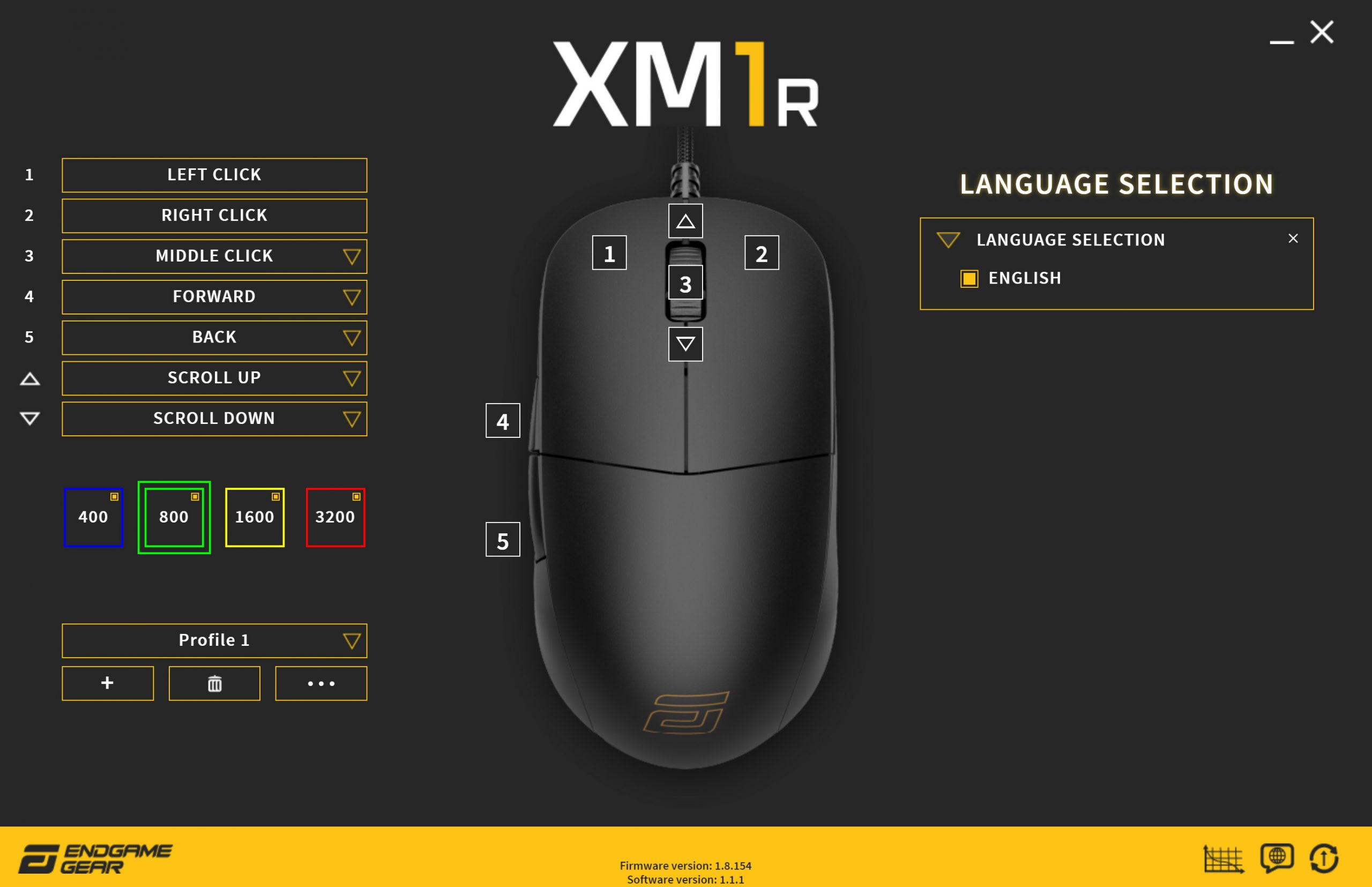 Where we can see that the software is still very much in beta, is by the fact that despite having an option to change language, English is the only option available. The firmware update tool also doesn't function correctly, as it updated my mouse to V 1.8.40, when 1.8.154 is the latest firmware update available.