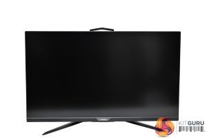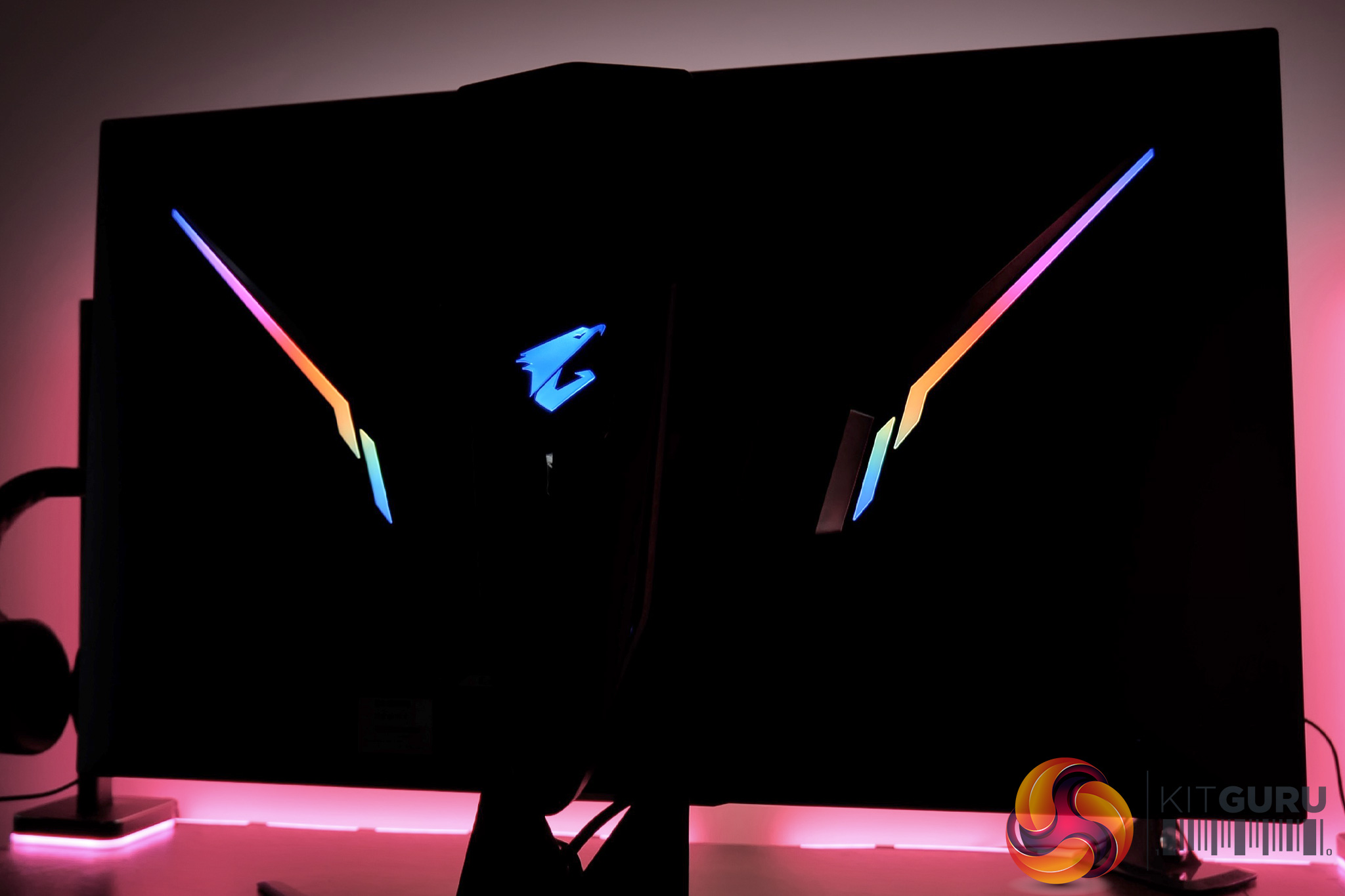 If we start the review with a look at the design of the FI32Q X, it's pretty clear that this is a gaming monitor. It sports a wide, v-shaped stand, while the rear of the panel is full of aggressive angles and sharp edges. This is less obvious from the front, but there is some angulation around the Aorus logo on the bottom bezel, and that logo itself is a bit of a giveaway, too.