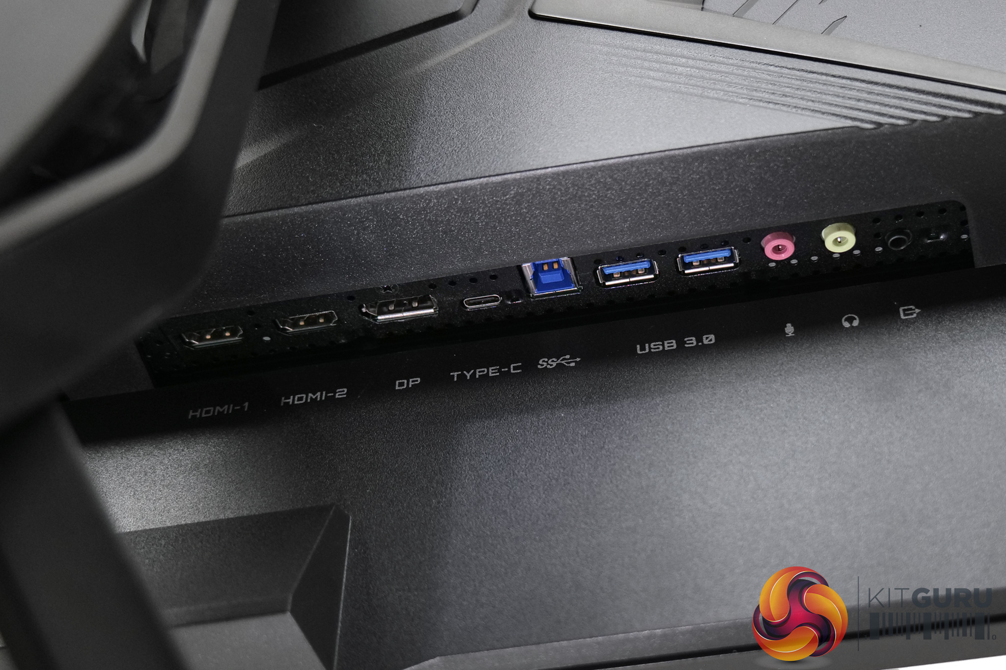 As for the I/O, the right side of the monitor is home to the power input. On the left, we find a full array of ports – 2x HDMI 2.1 and 1x DisplayPort 1.4 video outputs, plus 1x USB Type-C DP Alt. Next to those, there's a USB upstream input and its two corresponding USB 3.0 downstream ports, as well as both mic and line out options. The headphone jack is worth mentioning as it uses an ESS SABRE DAC. I personally have never plugged my headphones into my monitor so I am not sure how many will use this feature, but it is worth pointing out.