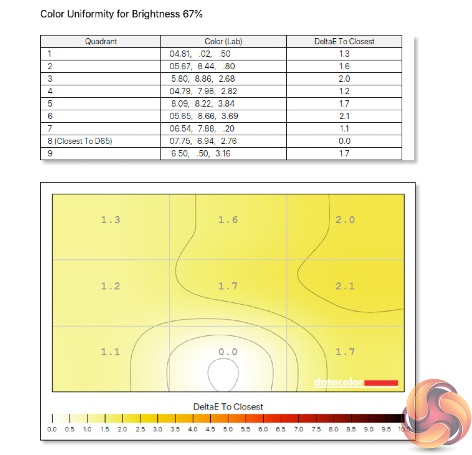 - The brightness deviation across the panel.