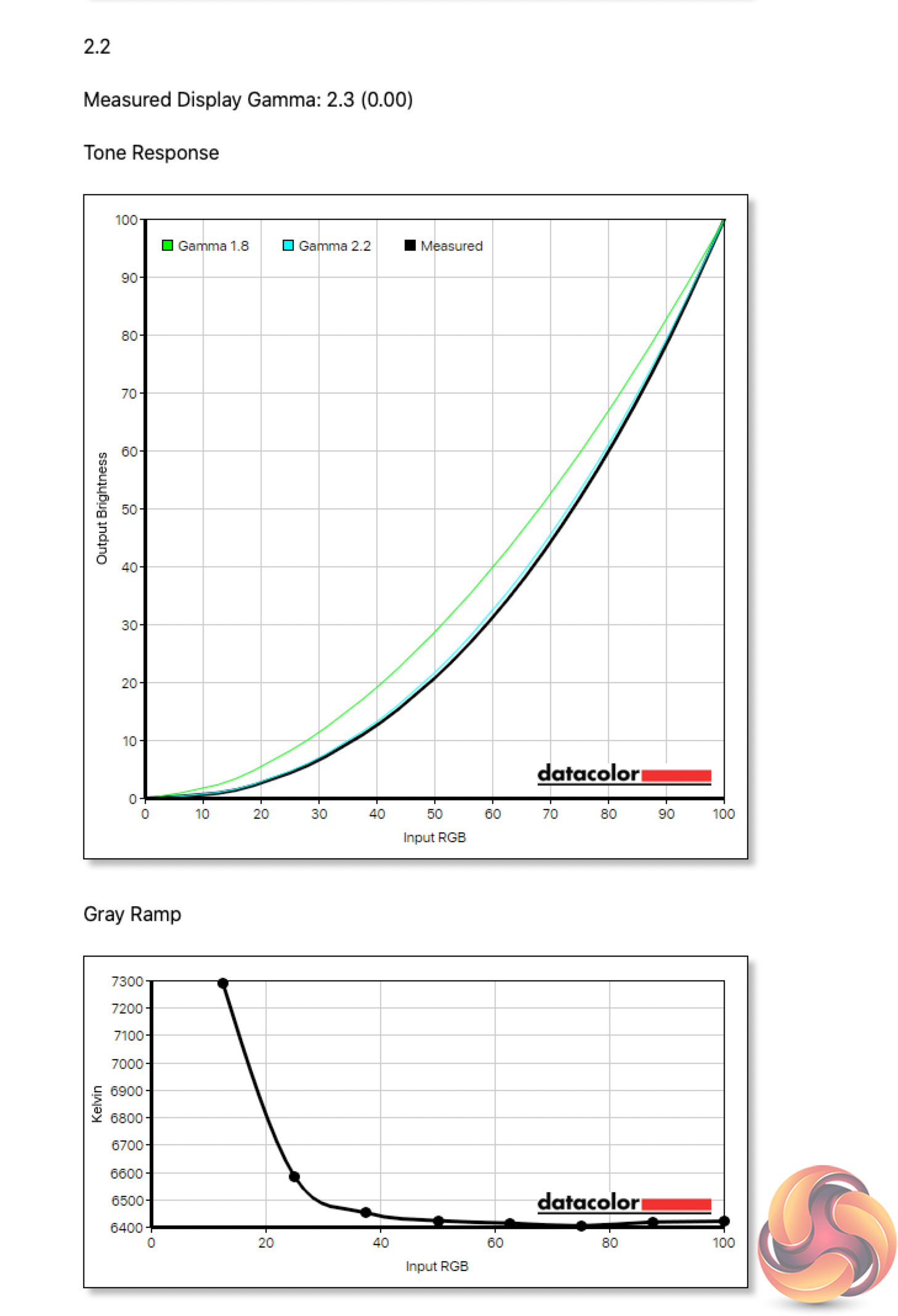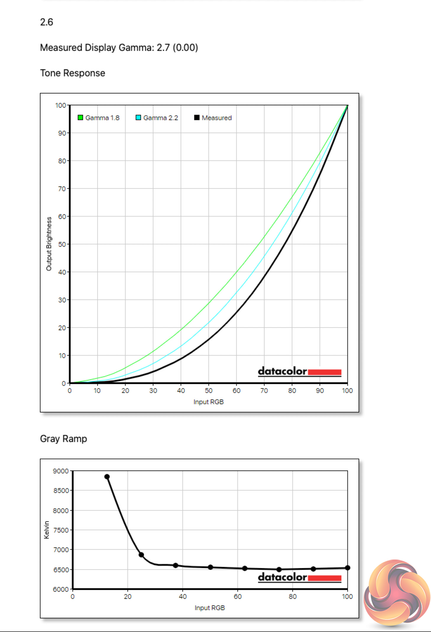 Meanwhile, there are five gamma options in the OSD, ranging from 1.8 to 2.6, in increments of 0.2. Our testing found each setting to report 0.1 below its actual value. So the Gamma 1.8 setting resulted in a gamma reading of 1.9, while Gamma 2.2 read as 2.3 and so on.