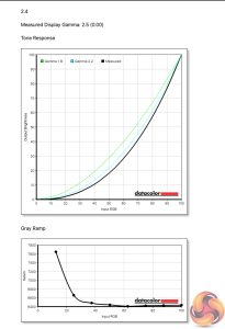 Our main test involves using a DataColor SpyderX Colorimeter to assess a display’s image quality. The device sits on top of the screen while the software generates colour tones and patterns, which it compares against predetermined values to work out how accurate the screen is.