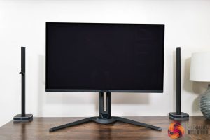 Build quality of the stand feels good and the V-shaped foot is made of metal which is always good to see, and it measures 54cm across and approximately 27cm from front to back.