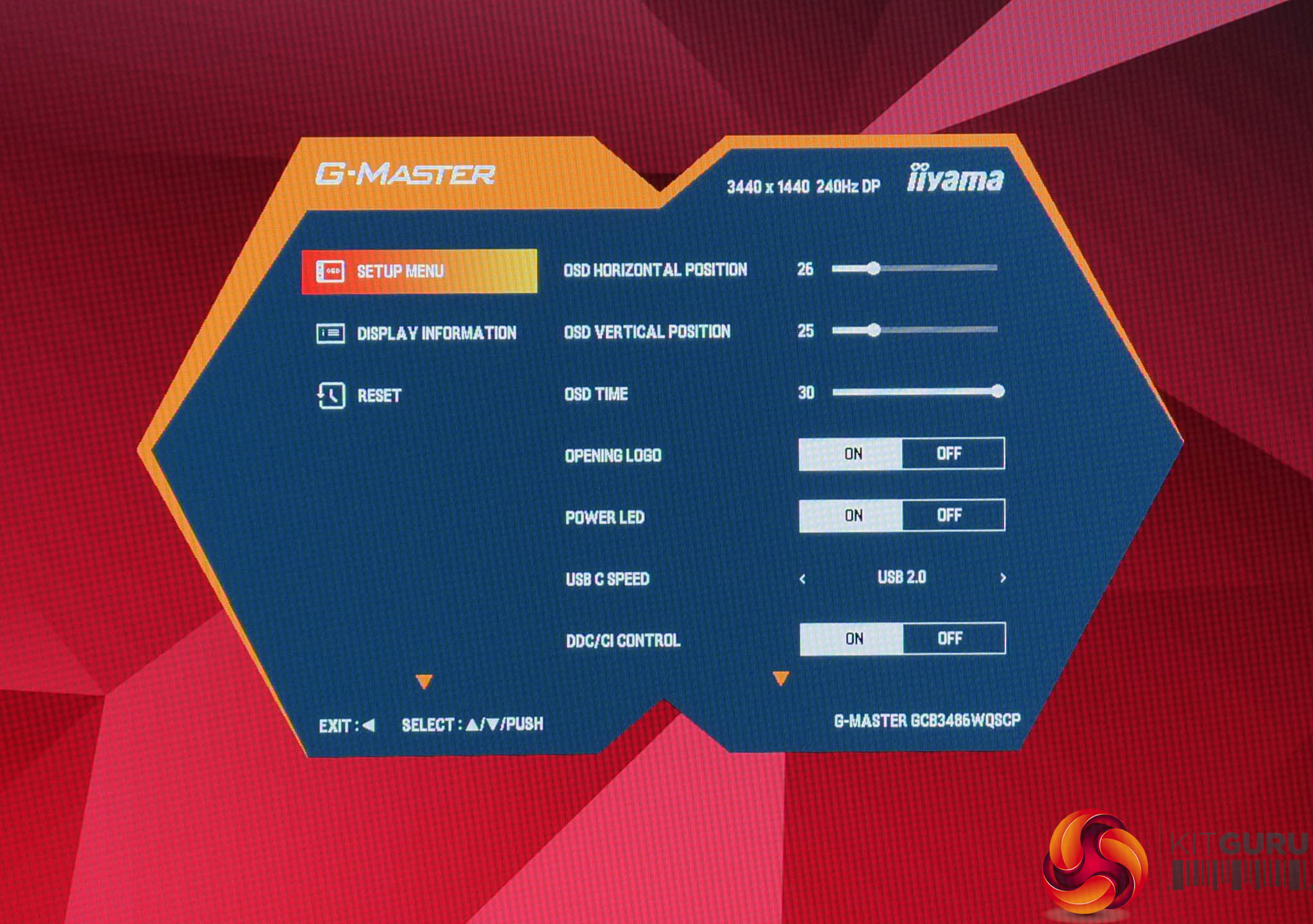 As for the OSD itself, this has a received a much-needed face lift since we last reviewed an iiyama monitor. The core feature-set and functionality appears similar, but it's now presented in a much cleaner overall package. It's also dead-easy to navigate thanks to the joystick – my only real gripe is the lack of any colour space modes, so there's no sRGB emulation mode, but otherwise I haven't got any major complaints.