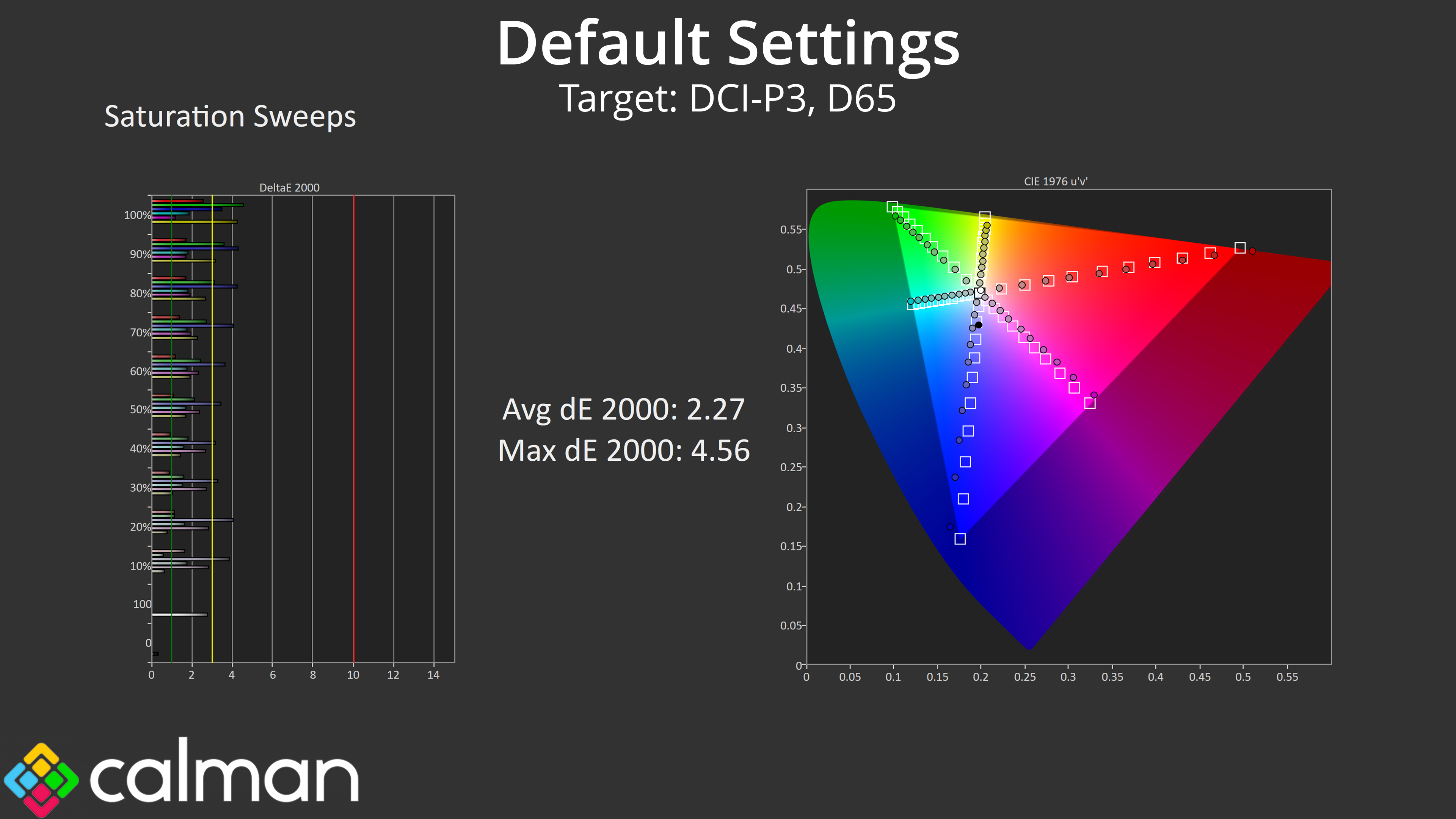 Meanwhile, our saturation sweeps a typical of a wide-gamut monitor, given we see a fair amount of oversaturation relative to sRGB, though things do improve when we compare against the DCI-P3 space.