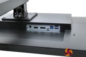 Looking now at the connectivity options, this is another indicator that iiyama had to walk a fine line to be able to offer this screen at its £250 price-point. There's only two video inputs, 1x HDMI 2.0 and 1x DisplayPort 1.4, a 3.5mm audio jack and a two-port USB 3.0 hub. If you're only connecting it to your PC, it is absolutely fine, but by modern standards just two video inputs – and no USB-C – could be seen as negatives by some.