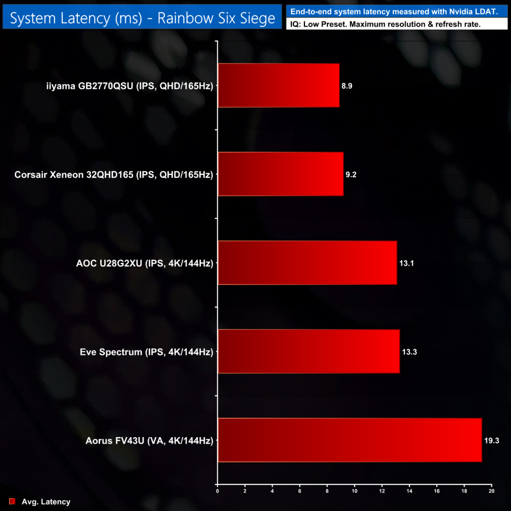 As this is end-to-end system latency, we are not measuring only the processing/input latency of each monitor we test. However, we can standardise the test process so the monitor is the only variable. It also gives an insight into how different refresh rates and resolutions can affect end-to-end latency, which is of course highly relevant to your purchasing decision.