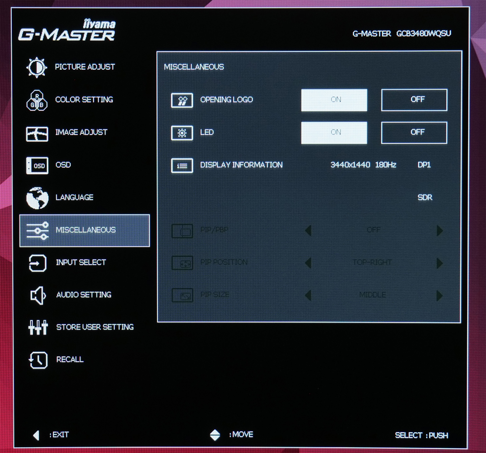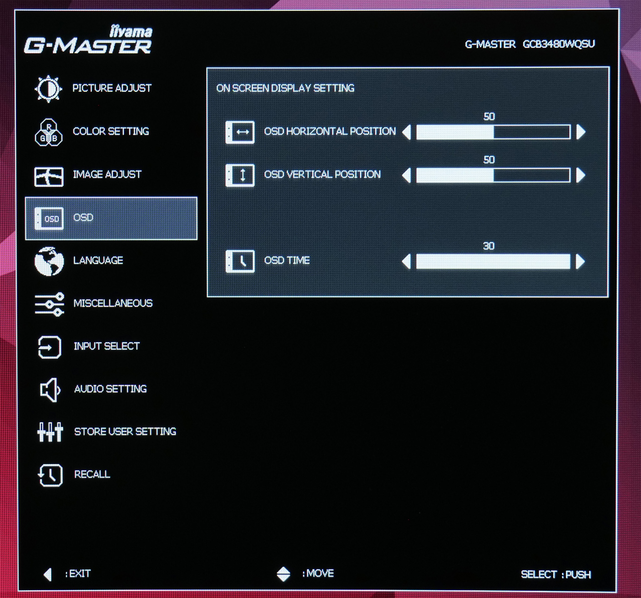 In general, the OSD is fine to use. Navigating is made easy thanks to the joystick which is nice and responsive, though the UI itself is fairly ugly and could do with a freshen up. There's plenty of adjustable settings too, including several overdrive modes and colour balance, though some gamers may miss the option for an FPS overlay or crosshair.
