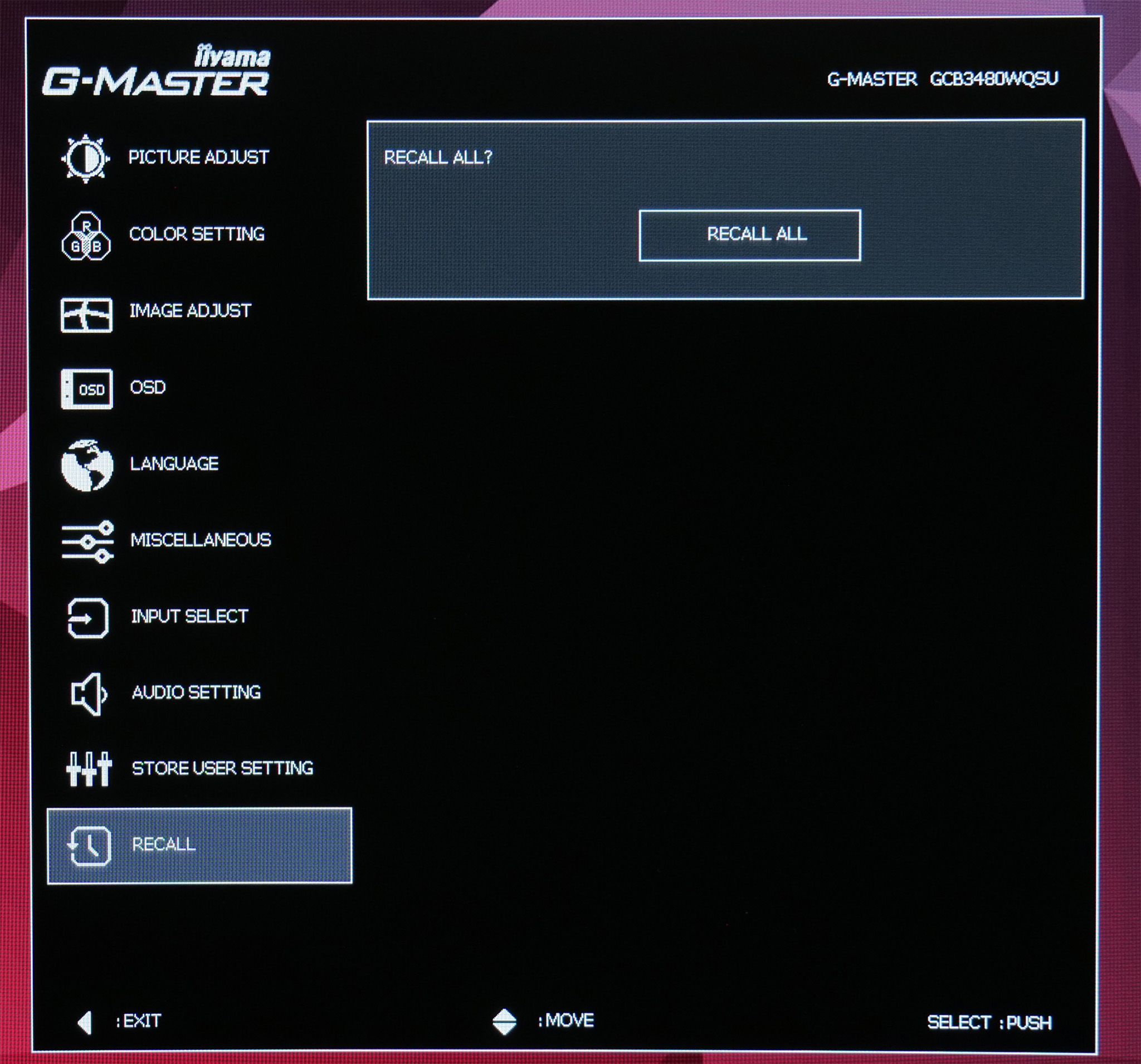 The OSD is very similar to what we have seen from other iiyama monitors in the past, with all controls split into 10 main sections, as you can see here: