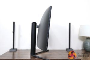 Starting first with the design of the M34-UWQHD-165-C, it's a rather plain-looking monitor it has to be said. The front looks fine, with thin bezels and just one LC-Power logo on the chin of the display. The back is entirely plain matte black plastic, with no real design elements apart from an ovular ring where the stand locks into place.