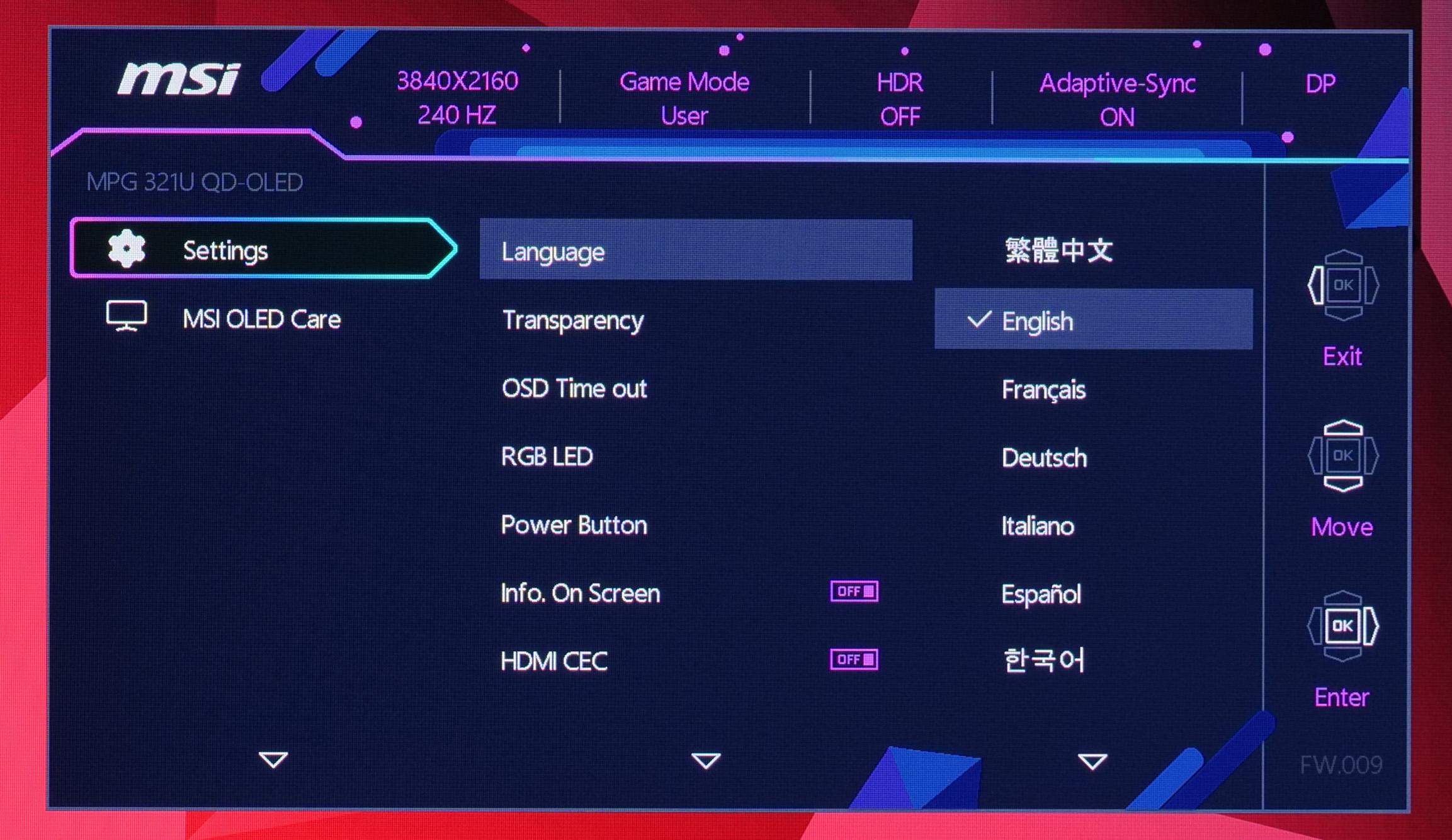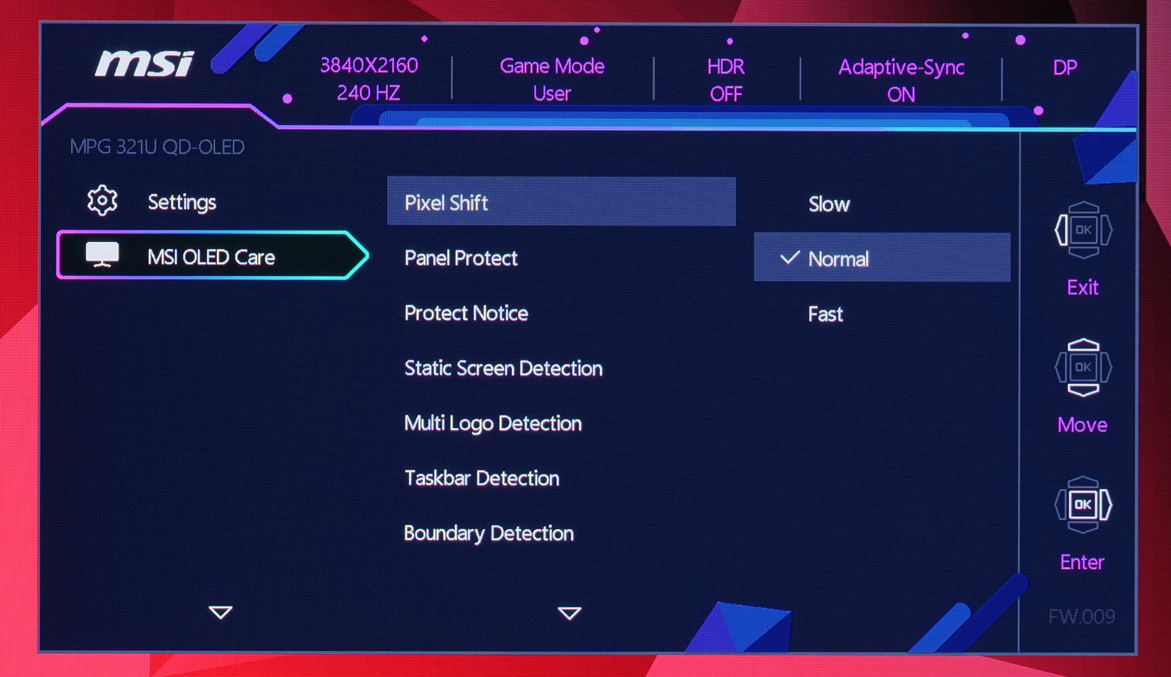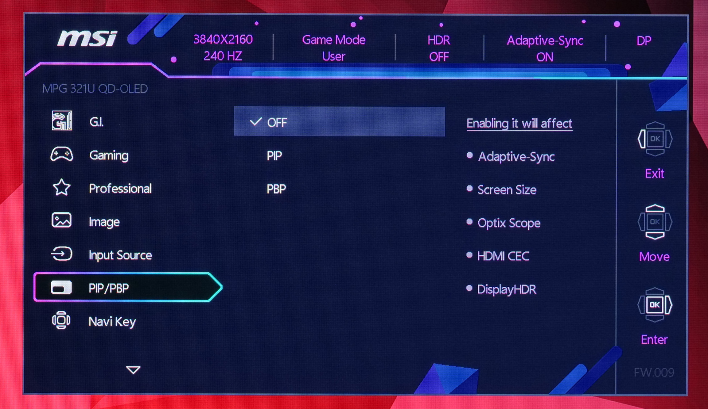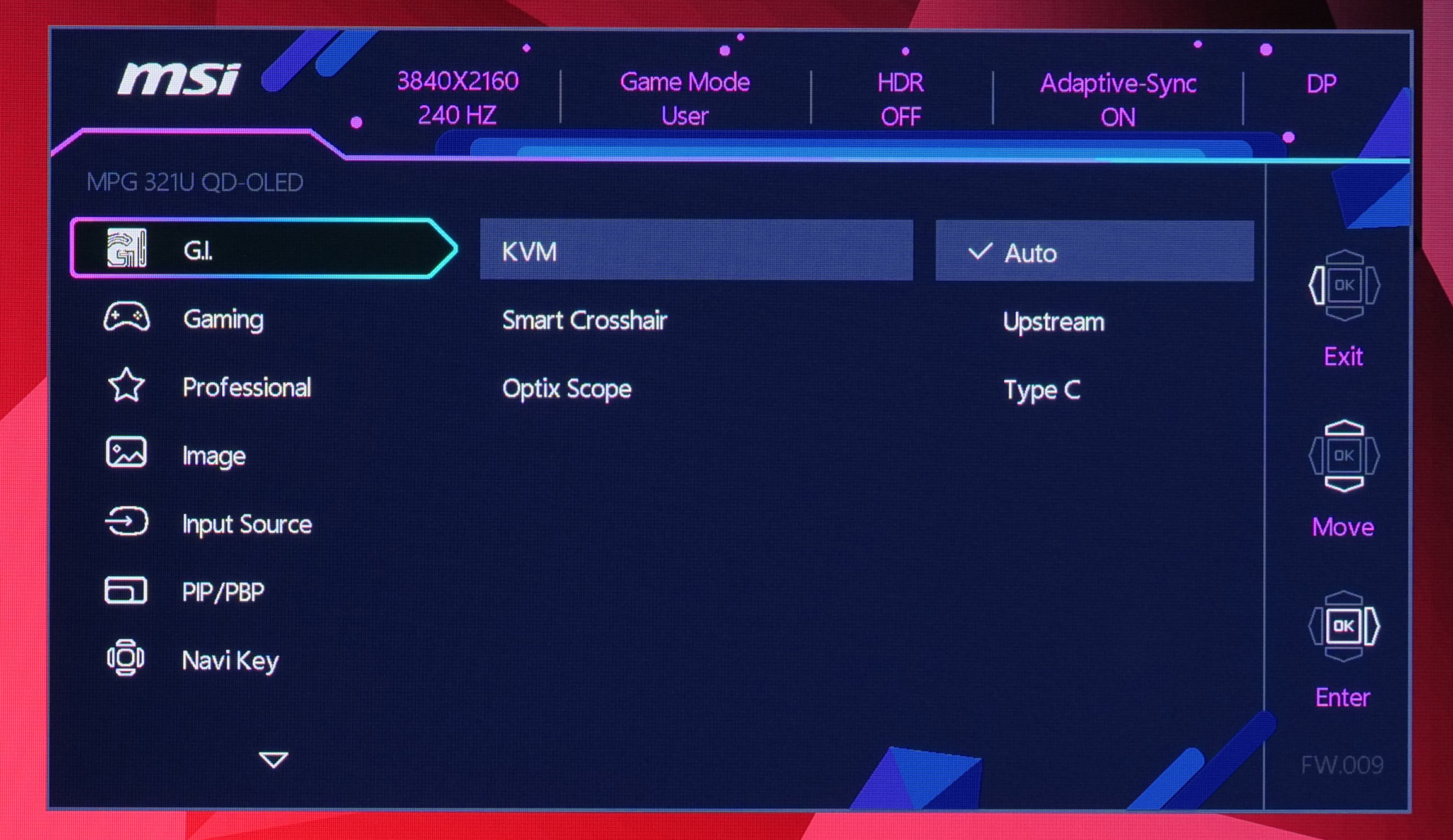 Using the same OSD system as we have come to expect from MSI, I don't have any major complaints here. It is quick to navigate using the joystick, things are sensibly laid out and it's a very well-featured selection too, with all the gamer-specific options we have come to expect as well as customisable white balance, an sRGB emulation mode and so on.
