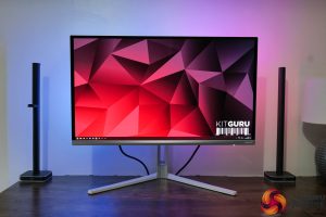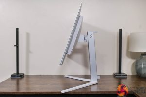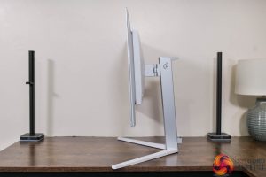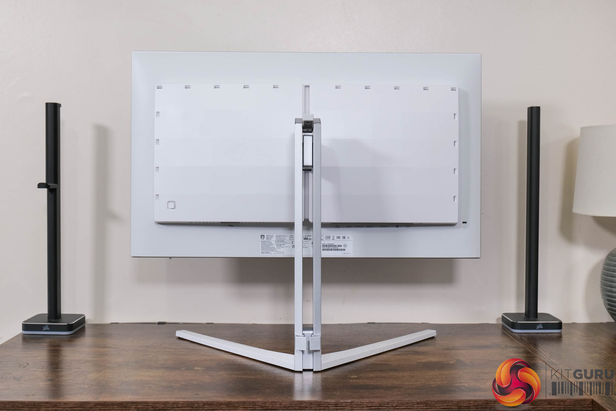 As for the stand, it offers up to 130mm of height adjustment, alongside 20 degrees of swivel both left and right, while there's tilt from 5 degrees downwards to 20 degrees upwards. That does mean no pivot, which is a slight shame considering it's only a fairly compact 27in display, but third-party VESA 100×100 mounts are supported via an included adapter bracket.