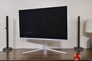 Kicking off with the design, the 27M2N8500 is very similar to previous Evnia screens we've reviewed, including the 49M2C8900. That's because it retains the same white and silver aesthetic, with a v-shaped foot and metal stand. I've warmed to it over the last year or two – it won't be for everyone, but it certainly stands out compared to the sea of all-black gaming monitors on the market.