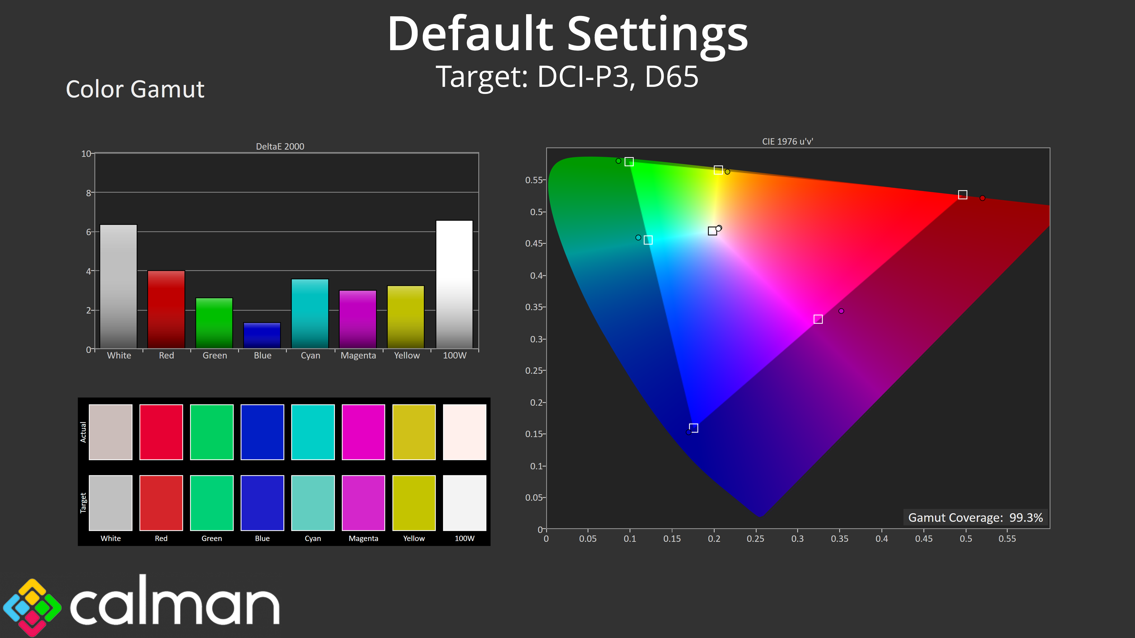 Relative to DCI-P3, it is better, but accuracy still isn't great, with an average dE 2000 of 3.26.